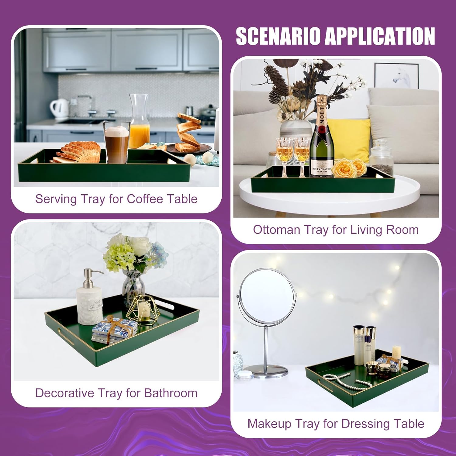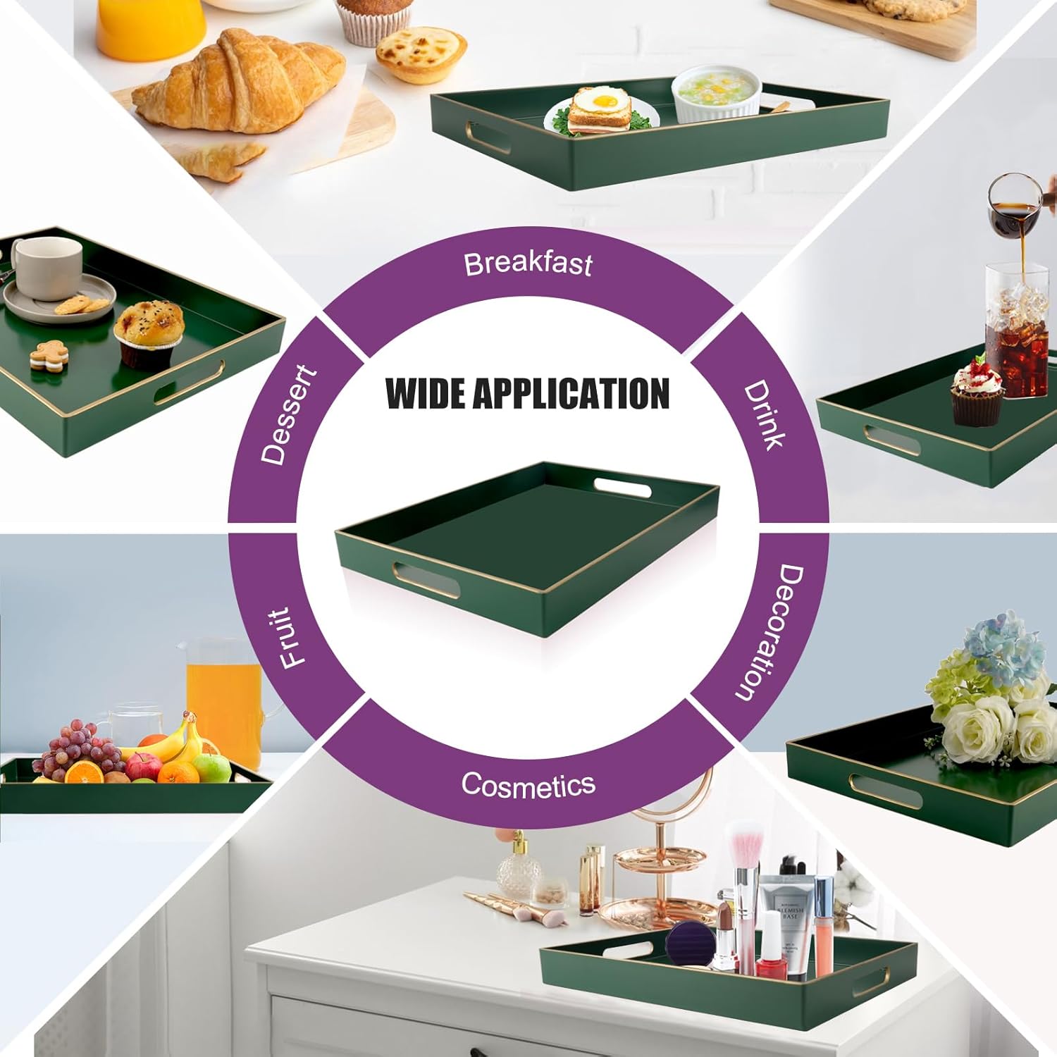 • 【Multipurpose Serving Trays】Designed for display and storage, this green serving tray can be used as a decorative tray, makeup tray, jewelry tray, service tray and desktop organization tray.This serving tray can also be used as a storage box for small items such as keys or TV remote controls. Also perfect for serving snacks, breakfast lunch or dinner.