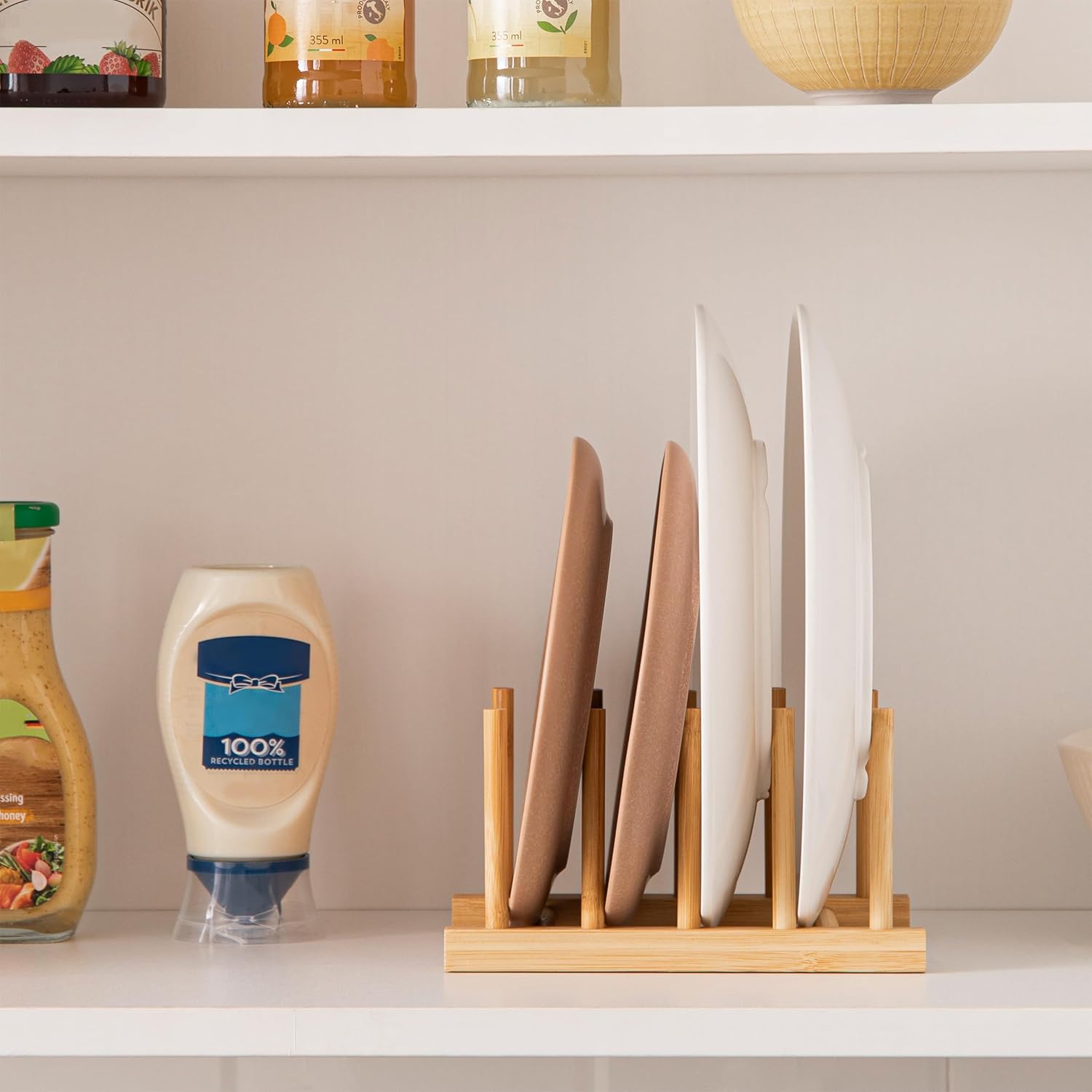 HBlife Bamboo Dish Plate Bowl Cup Book Pot Lid Cutting Board Drying Rack Stand Drainer Storage Holder Organizer Kitchen Cabinet(Keep Dry)