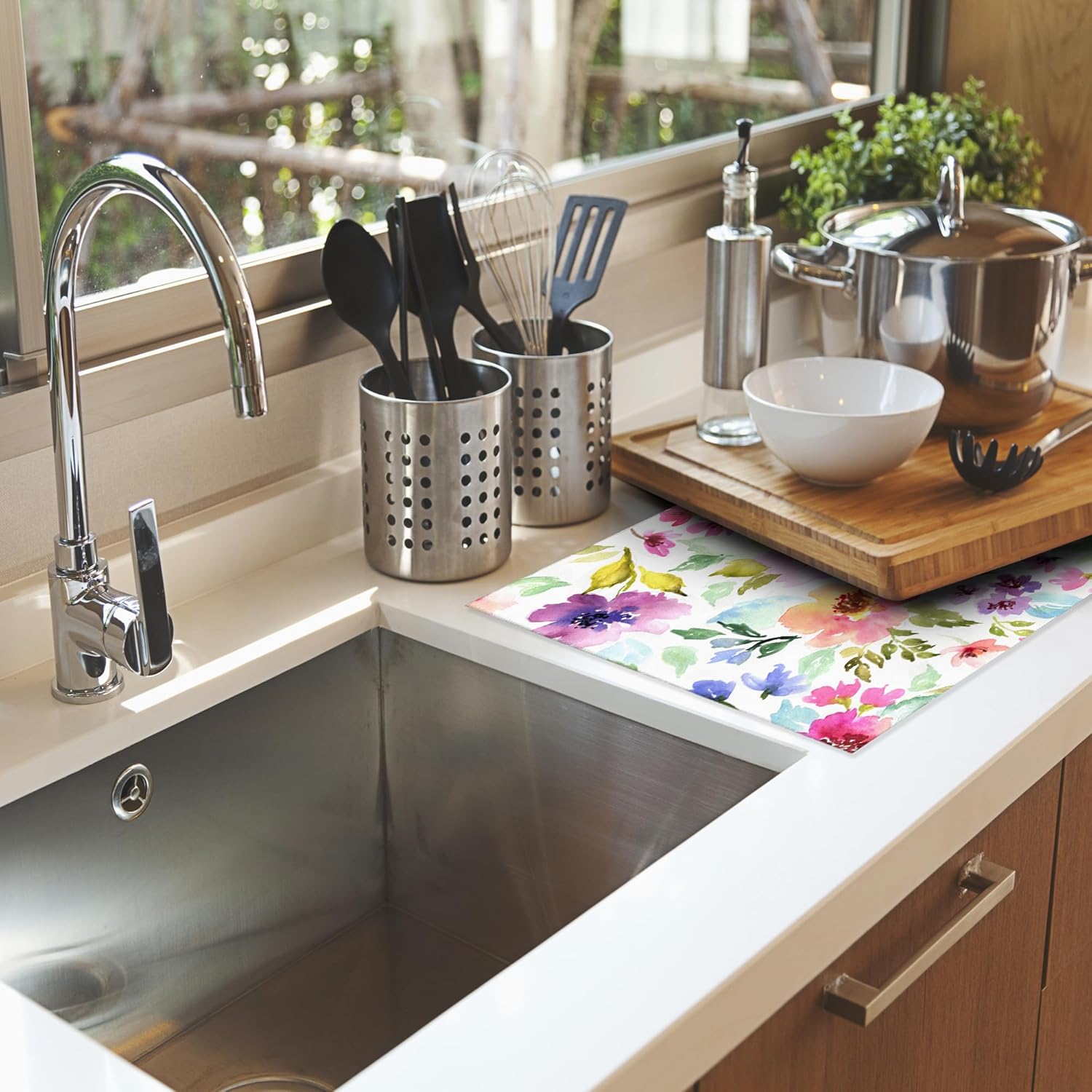 Purple Pink Dish Drying Mats 18x24 Inch,Watercolor Flowers Dish Pad Drying Rack Mat for Kitchen Counter Ultra Absorbent Microfiber Dishware Coffee Maker Bar Countertop Decor