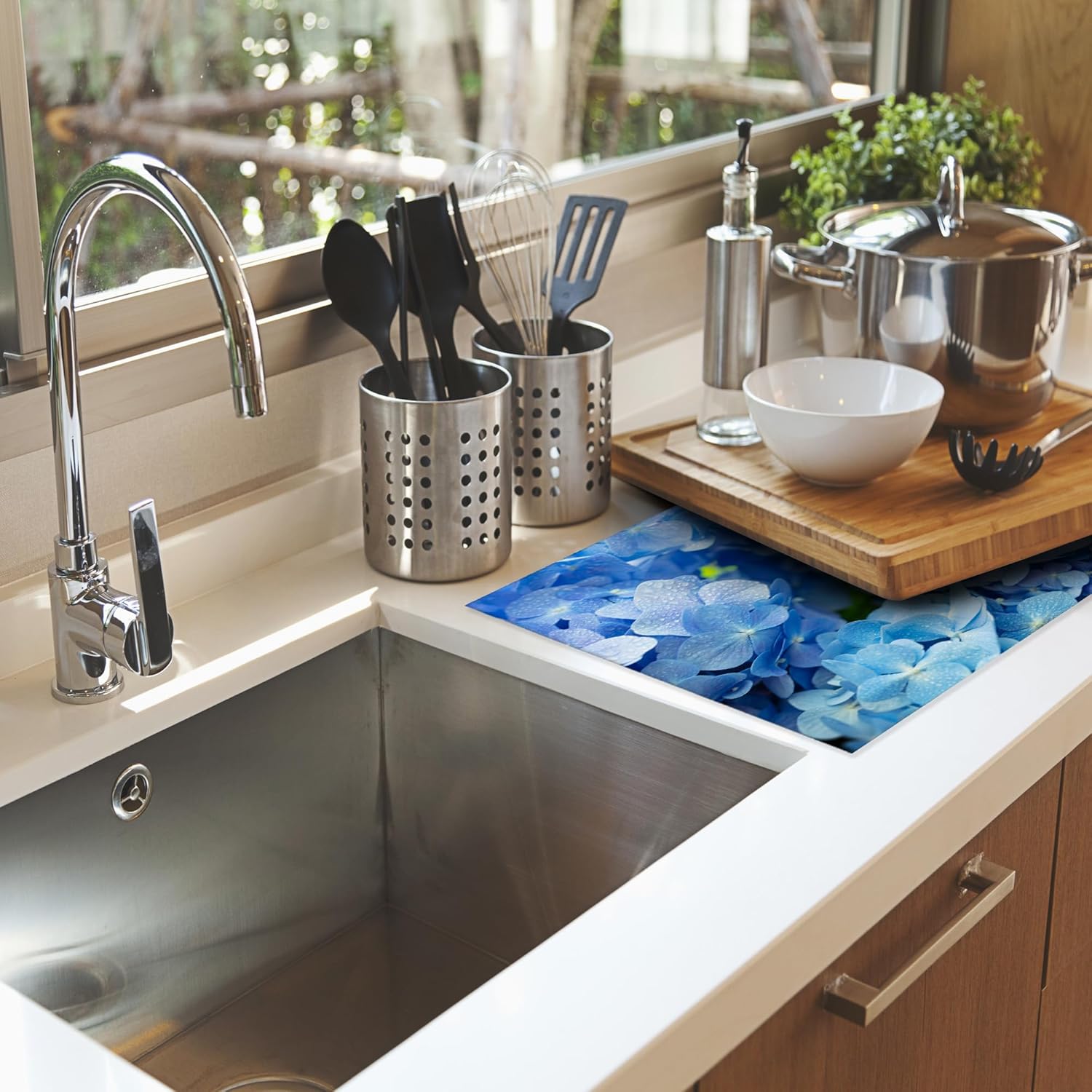 Blue Hydrangea Flower Dish Drying Mats 18x24 Inch, Dish Pad Drying Rack Mat for Kitchen Counter Ultra Absorbent Microfiber Dishware Coffee Maker Bar Countertop Decor