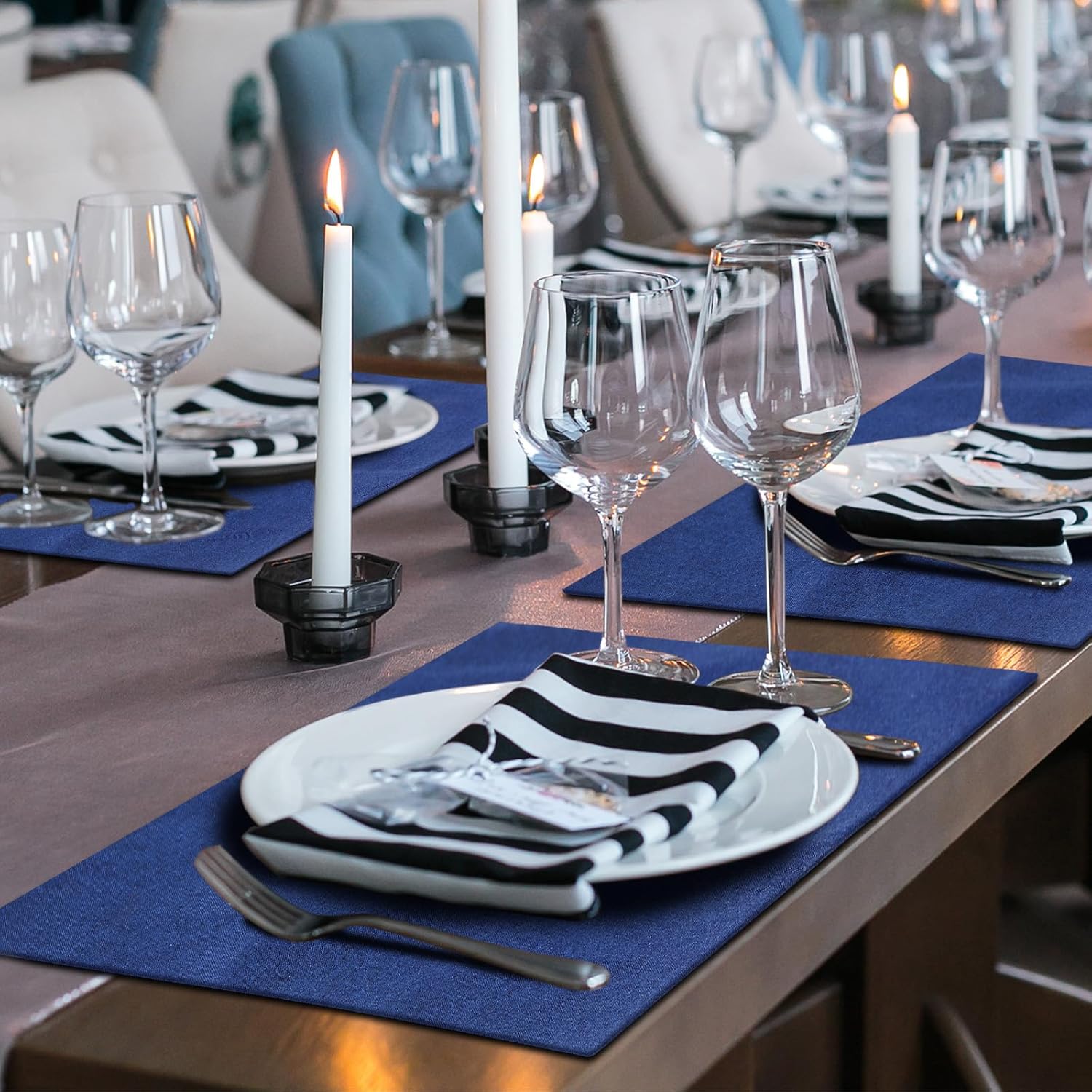 Sieral Cloth Placemats Set of 12 Rectangle Dining Table Placemats Bulk 13 x 19 Inch Machine Washable Heat Resistant Cotton Linen Table Mats for Wedding Baby Shower Birthday Party Supplies(Dark Blue)