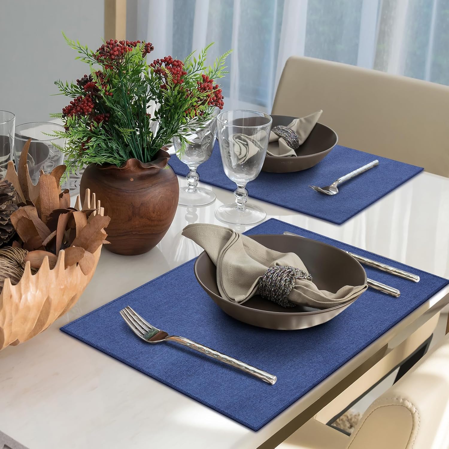 • Value Set: what you will receive are 12 pieces of place mats in dark blue, naturally adding a touch of farmhouse to the dining table; Sufficient quantities and moderate sizes can fully meet your daily use or replacement needs, protecting your tables from crumbs and stains