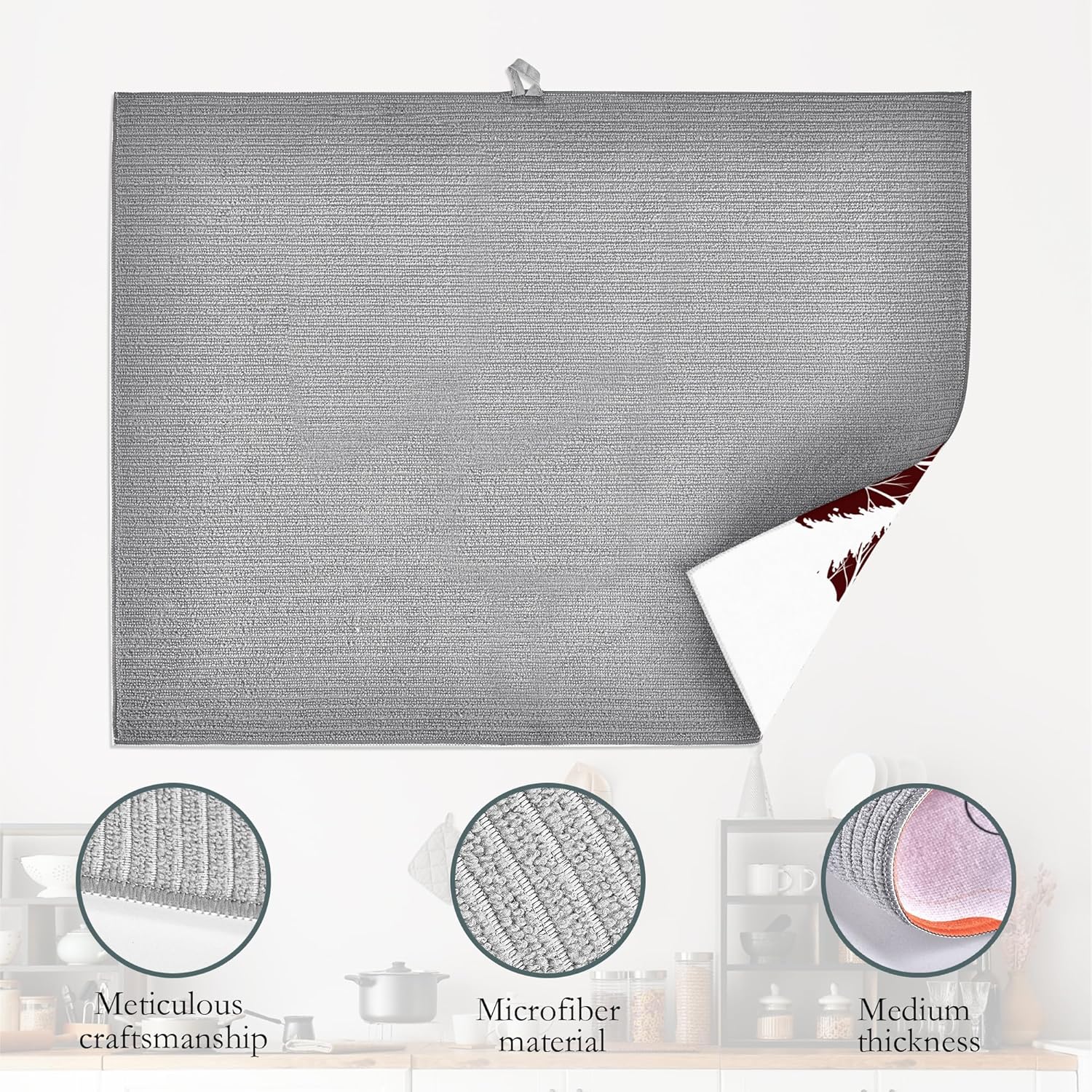 • DESIGN: Reversible with a different design on each side.The dish drying mat with hanging loop, can be hung on the kitchen wall. Soft and foldable, easy to store in any drawer, cabinet, or closet. Microfiber is naturally, long lasting, and cleans up easily, and is effortless to clean.