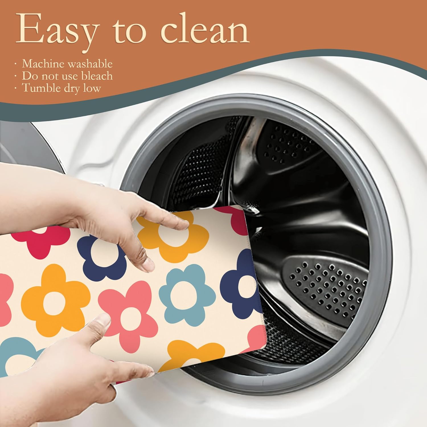 Vintage Groovy Flowers Dish Drying Rack Mats Decor,Colorful Daisy Dish Pad Drying Mat Kitchen Counter 18x24 Inch Absorbent Reversible Microfiber for Coffee Bar Sink Countertop