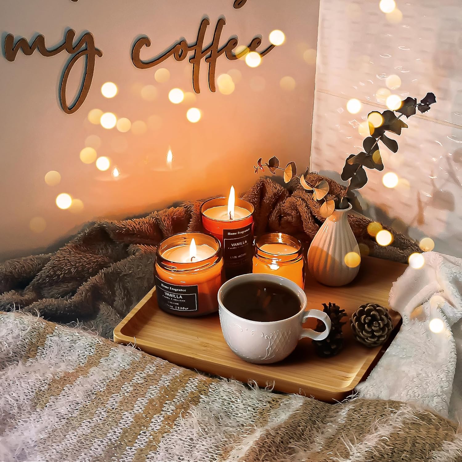Square Bamboo Serving Tray with Handles - 9.4x7.4 Inch Rustic Wooden Platter for Coffee, Kitchen, Living Room & Party (Lightweight, Splinter-Free & Oil-Coated)