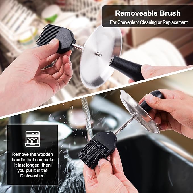 • 【Heat Resistant】: The BPA-free silicone brush head can withstand temperatures up to 446°F, while the stainless steel pot can be placed directly on the heat source for warming oil or sauce.