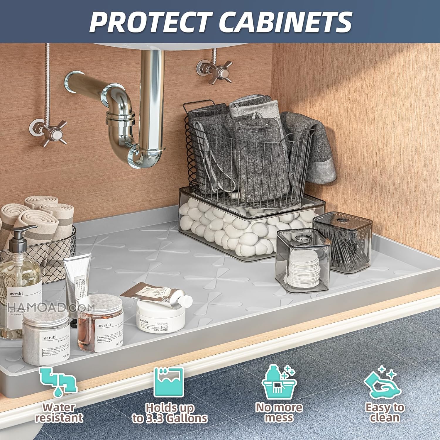 SIKADEER 34" x 19" Under Sink Mat Waterproof, Silicone Mat Kitchen Drawer Shelf and Cabinet Liner, Sink Protector for Kitchen Organizers and Storage, Boot Tray Pet Food Mats