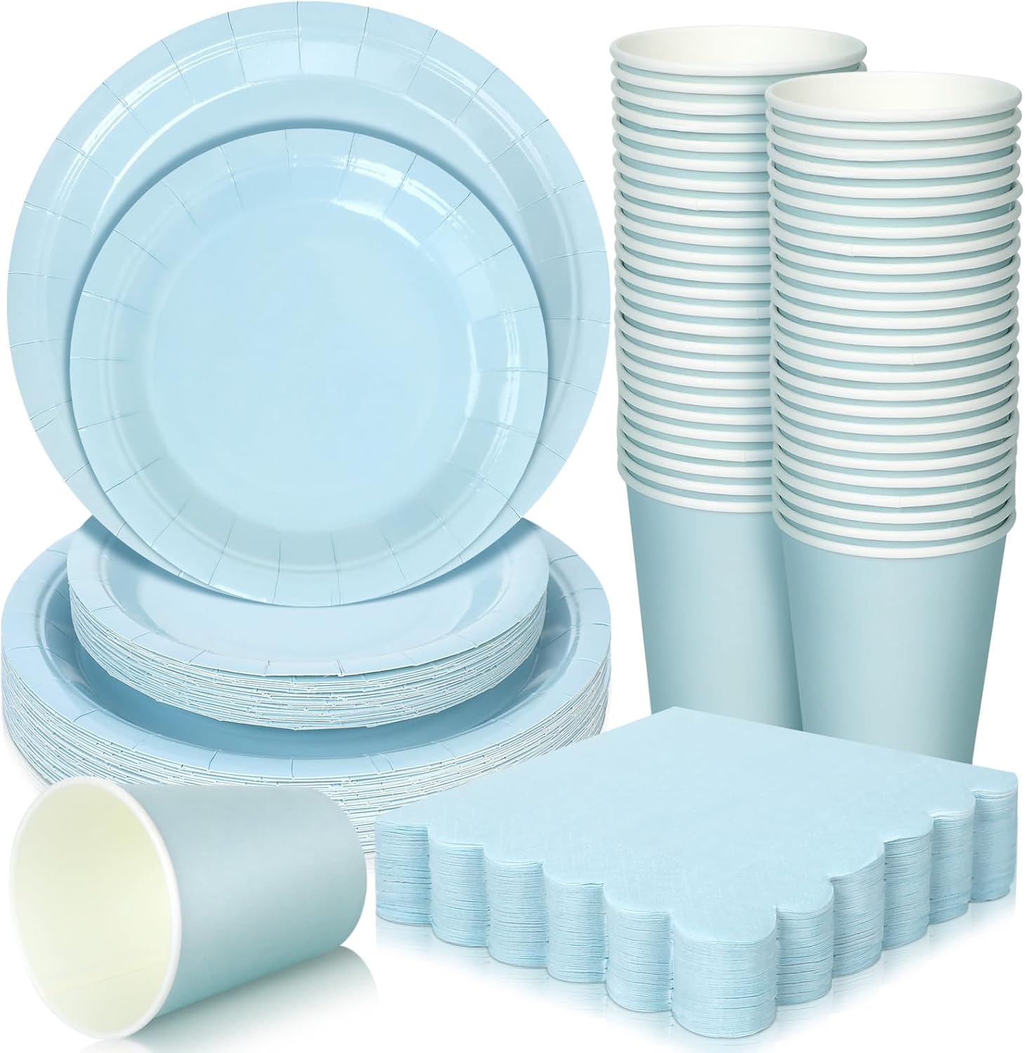• Versatile Application: experience versatility with our light blue paper napkins, paper plates, and paper cup; They are well suited for various occasions like birthdays, family gatherings, weddings, baby shower, holiday, bridal shower, retirements, and casual get together; Their wide application adds a touch of elegance and convenience to any social gathering