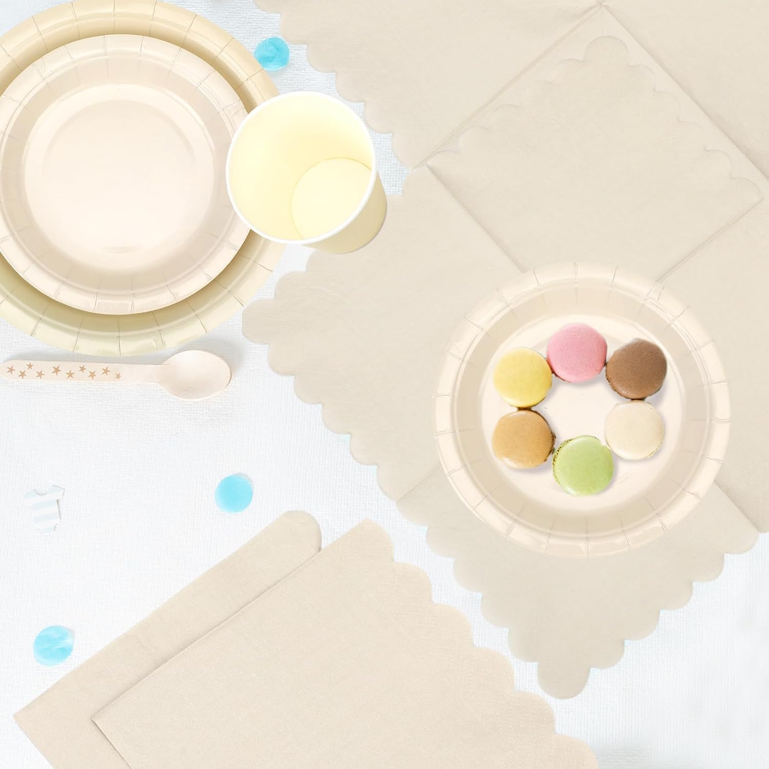 • Generous Quantity: we offer a generous package that includes 50 scalloped edged cocktail napkins, 50 scalloped paper plates (25 pieces of 7 inches and 25 pieces of 9 inches), and 50 paper cups; This abundant quantity ensures you have enough supplies to serve your guests efficiently without interruption or shortage