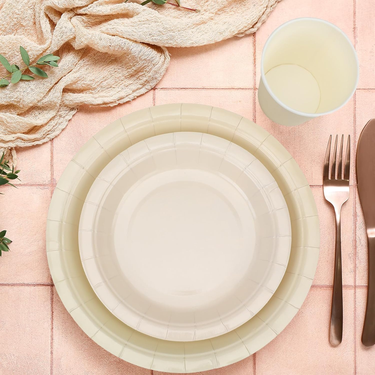 • Versatile Application: experience versatility with our milky white disposable napkins plates cup; They are well suited for various occasions like birthdays, family gatherings, weddings, baby shower, holiday, bridal shower, retirements, and casual get together; Their wide application adds a touch of elegance and convenience to any social gathering