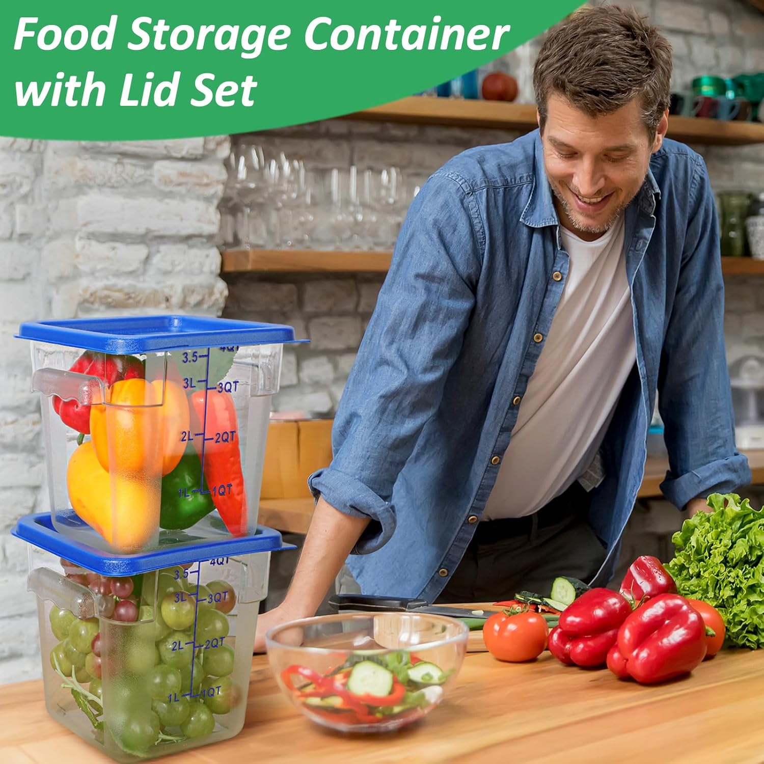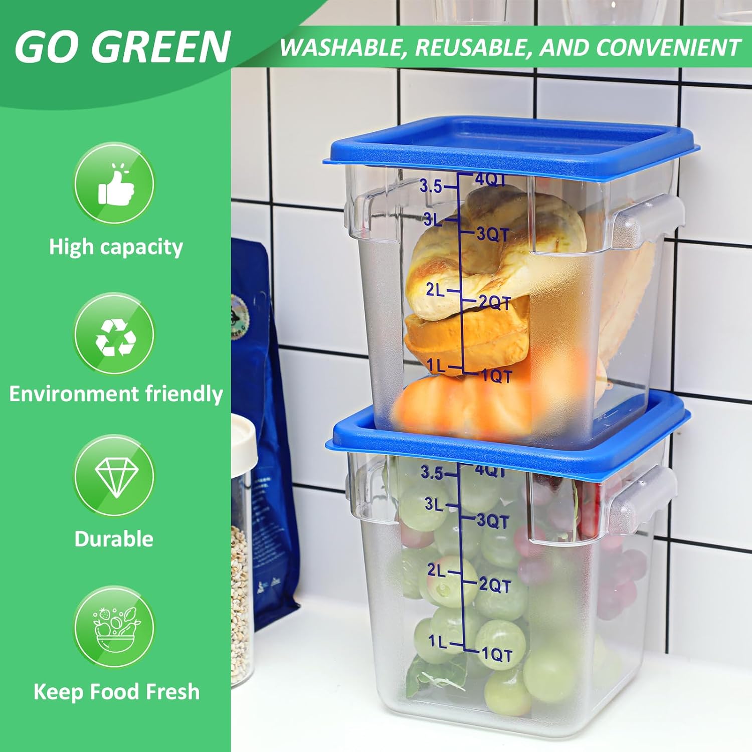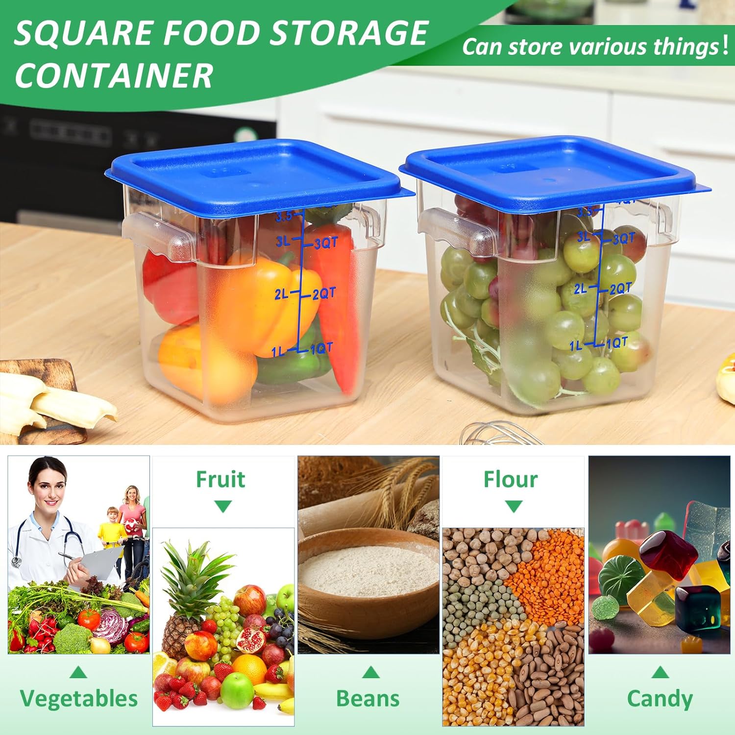 • Proper Size: the capacity of our food containers with lids is about 4 quarts/ 4 L; It measures approx. 7.4 x 7.4 x 7.28 inches/ 18.8 x 18.8 x 18.5 cm, which can hold freshly fruit salads, sliced vegetables, dry ingredients, sugar, flour, cereal, rice and some pre processed food; Besides, they can also store soups, sauces, doughs and some mixed liquids
