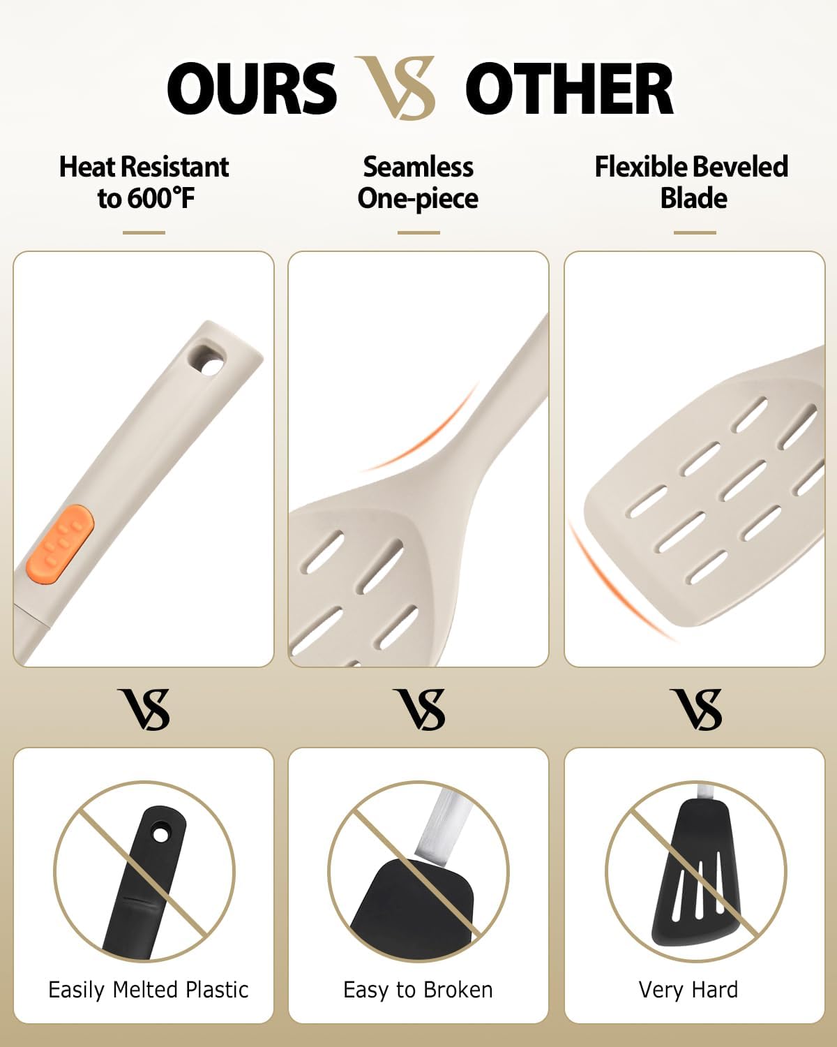 • Heat Resistant: Our silicone spatula turner and spoon set is made of food grade silicone . BPA free and will not rust. Even at 600℉, you don't have to worry about melting or deformation.