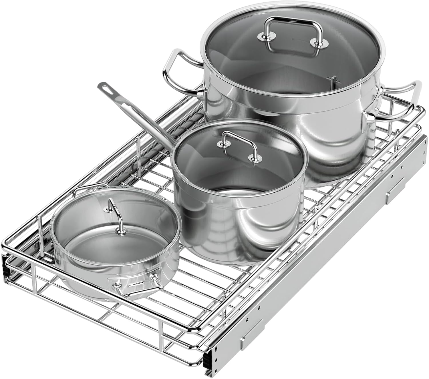 ZOINLIY Pull Out Cabinet Organizer, Versatile Slide Out Kitchen Organizers and Storage,Heavy Duty Drawer Cupboard Storage Basket, Smooth Sliding, Chrome Finish,11.8" W x 21" D