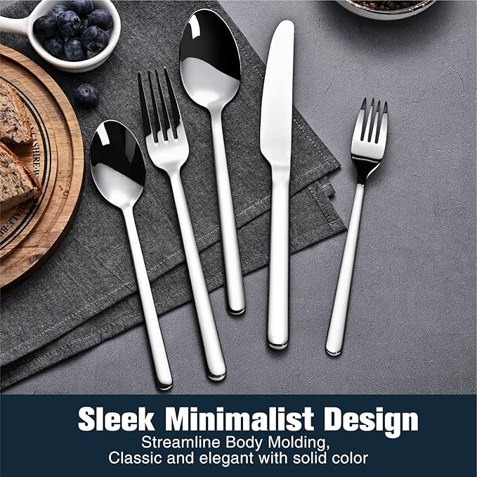 • This flatware set is perfect for Thanksgiving Day, Mother's Day, Housewarming, Wedding, Restaurant, Hotel or Daily Use. Simple classic modern design would match well with your existing cutlery and elevate everyday meals into a fine dining experience
