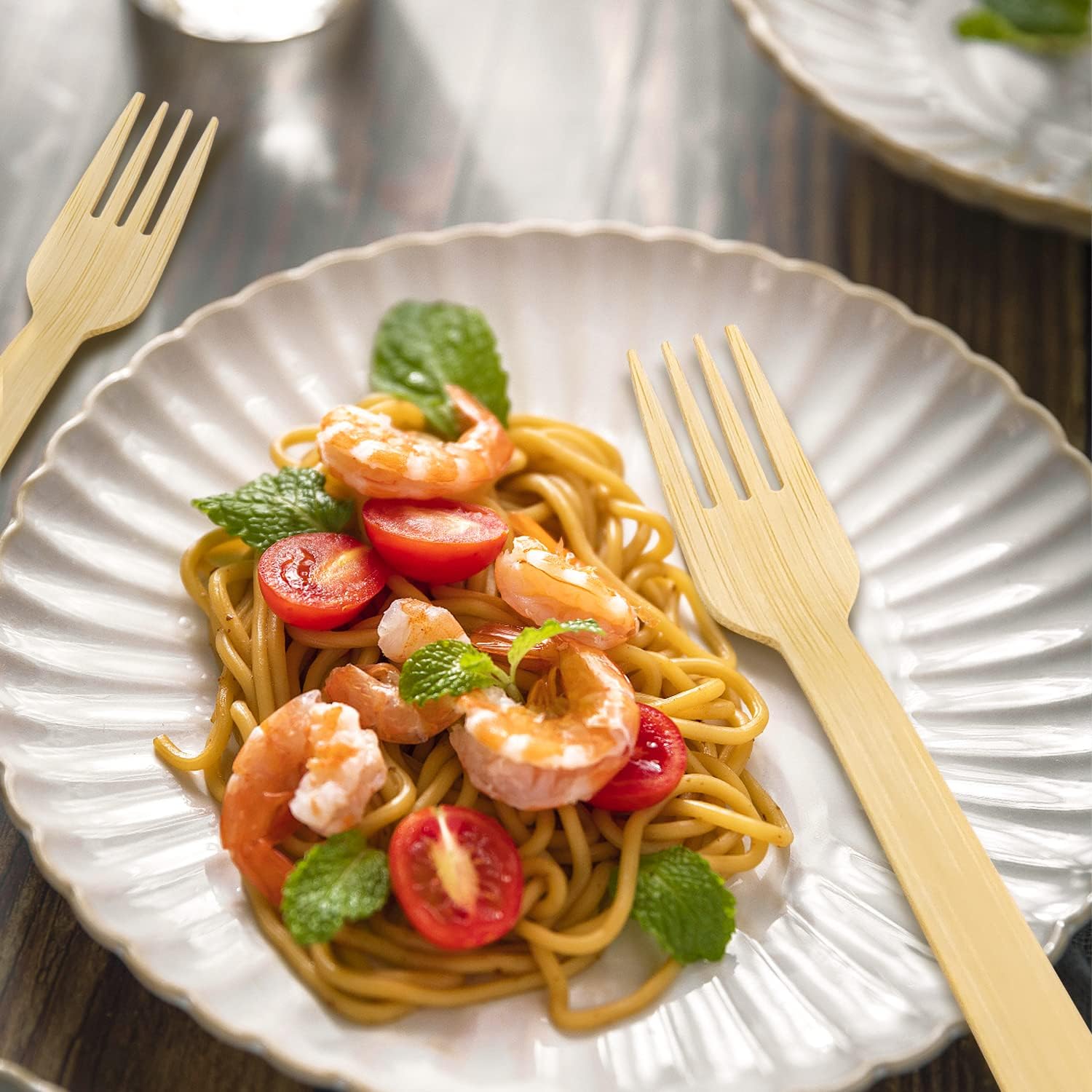 • ♻【What Is Included】The heavy-duty cutlery includes 2200 bamboo forks, containing no harmful chemicals, splinter free, sturdy. You can use it for dessert, fruit, salad, spaghetti, etc. with peace of mind. Use the dinnerware set to enjoy various cuisines.