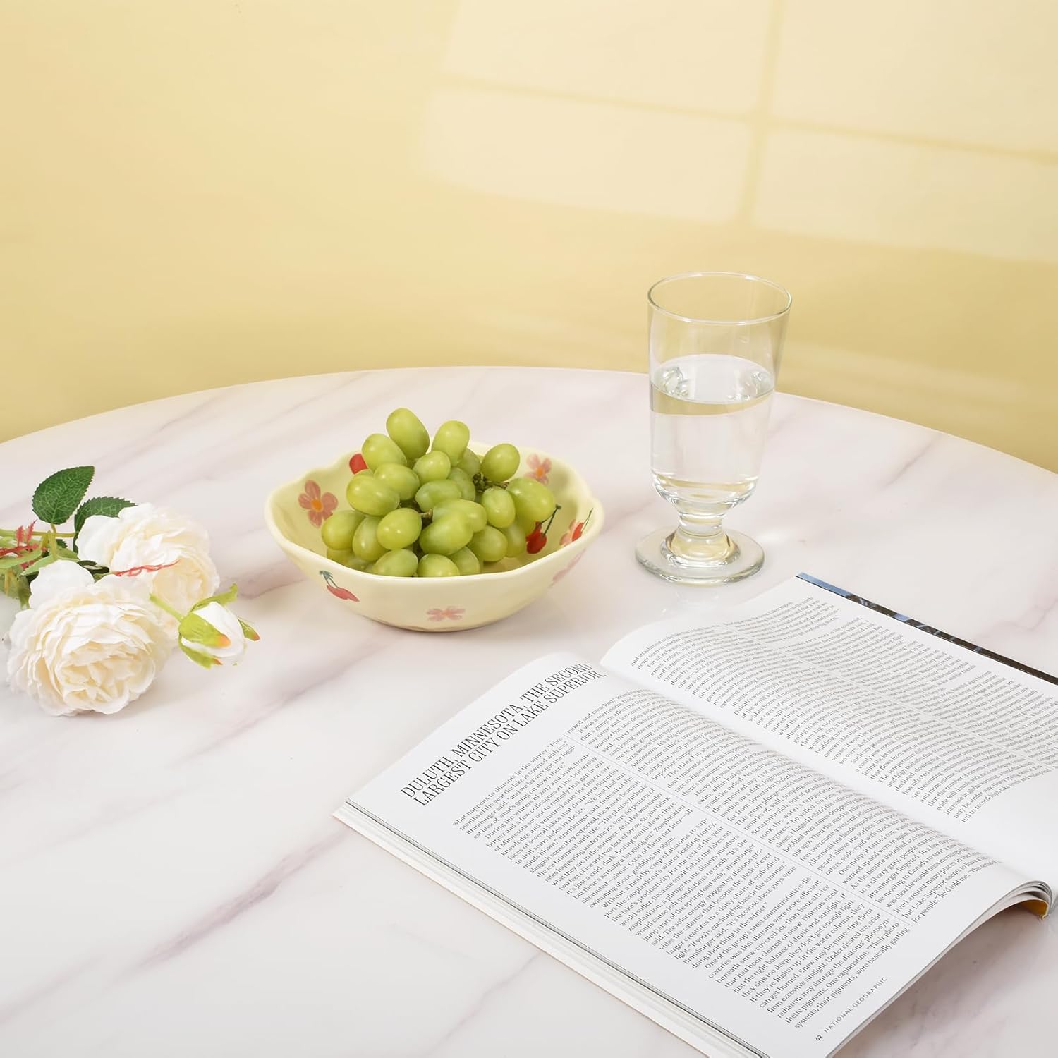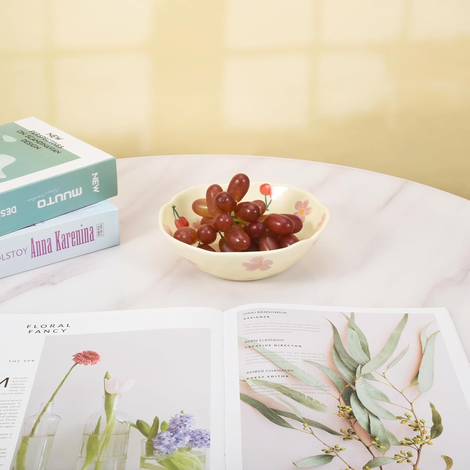 Koythin Salad Bowls, Cute Cherry Flower Ceramic Bowls, Cream Yellow Serving Bowl for Pasta, Cereal, Fruit, Soup, Rice, Dishwasher and Microwave Safe (Cherry Set of 1)