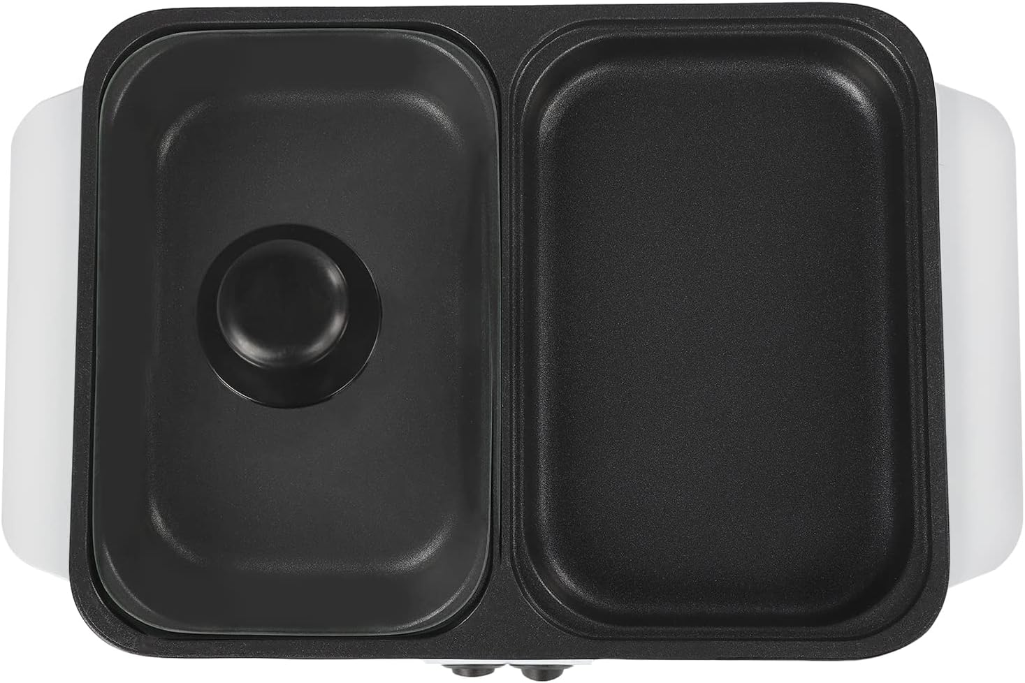 Electric Hot Pot with Grill and Frying Pan, 2 in 1 Indoor NonStick Shabu Shabu Pot and Griddle, Dual Temperature Control, Fast Heating for BBQ Steak Noodles (White)