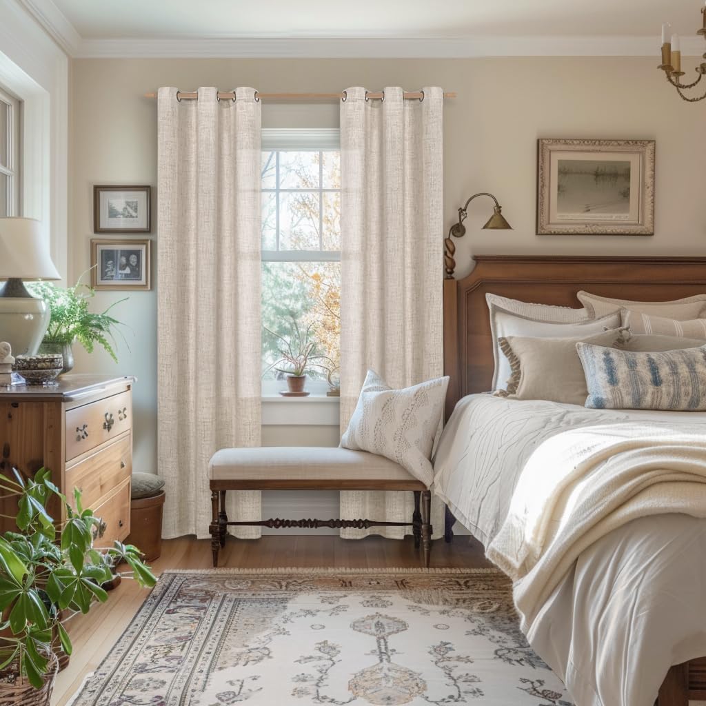 • Textured Linen Look: Our faux linen curtains are made from linen blend fabric with a premium soft touch, excellent drape and wrinkle-free. Natural and rustic look that adds warmth and texture to any room, suitable for the living room, bedroom, farmhouse, dining room, office and any style space.