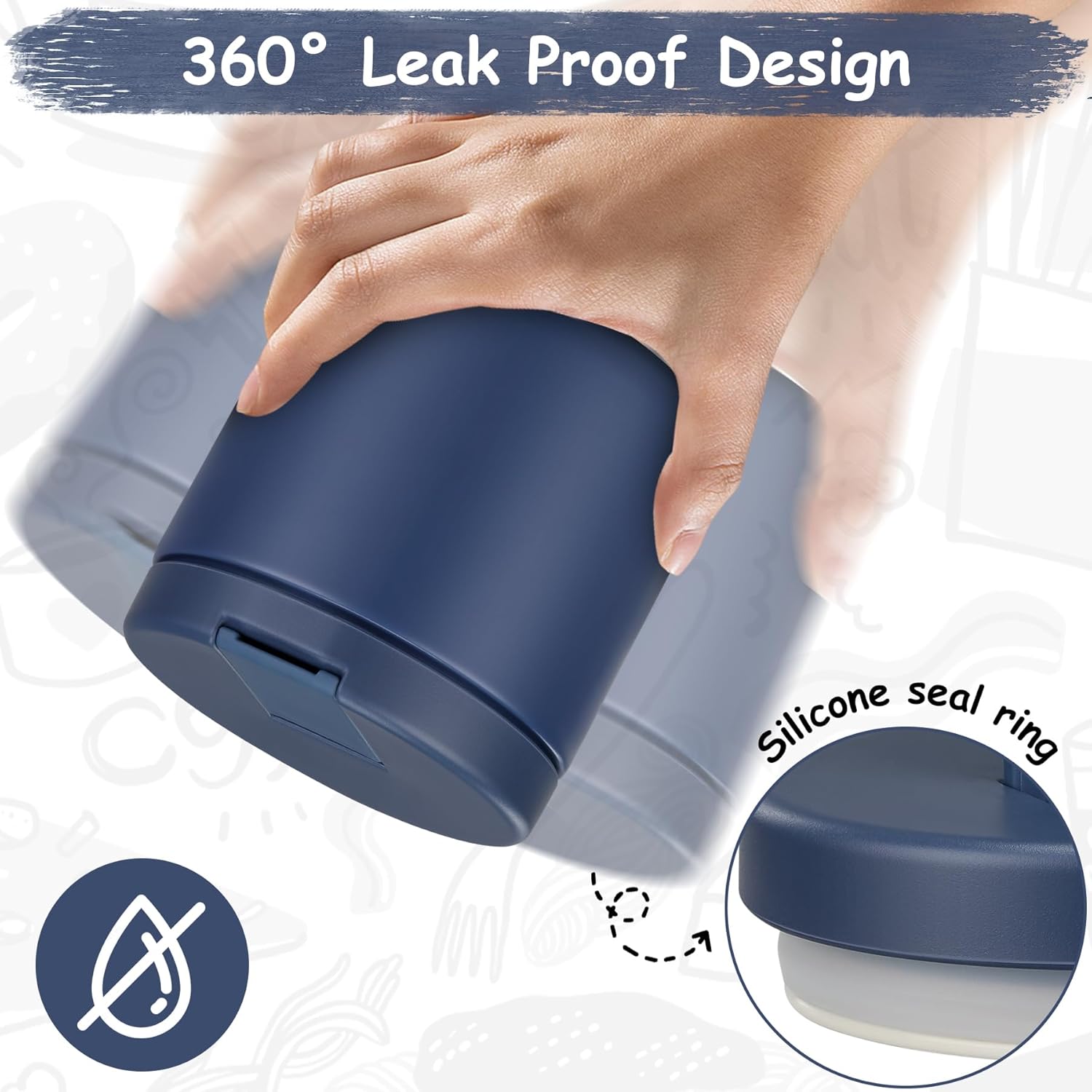 • 100% Leak Proof:Our food thermo comes with a thick silicone gasket. It is full sealed. So you can toss it in your bag or insulation bag without worrying about spills. Wide mouth design are also very easy to clean.