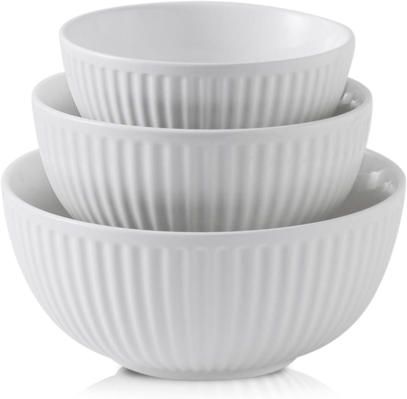 Hasense Ceramic Ribbed Nesting White Bowls 1.5/1/0.5 Qt For Kitchen, Cooking, Baking and Serving Salad Bowls for Pasta, Small Mixing Bowls of 3, Modern Space Saving Dishes for Kitchen