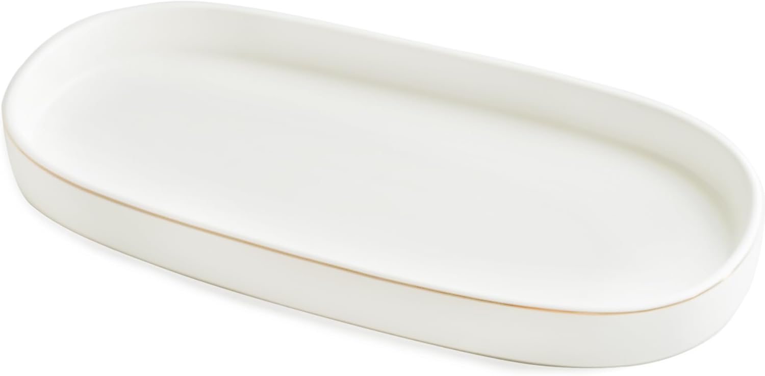 10x5 Bathroom Vanity Tray, Oval Ceramic Decorative Perfume Candle Tray for Bathroom/Kitchen Counter, White