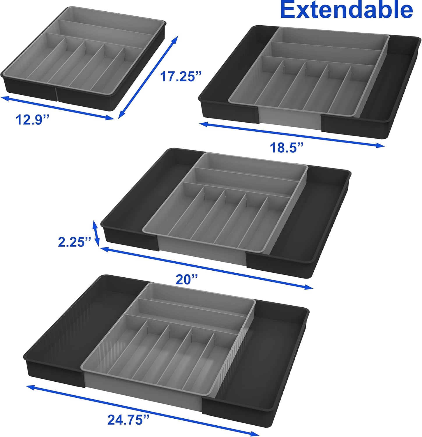 • Removable middle tray allows this organizer transform into 3 pieces. Thus it can be used in 3 different size of drawers
