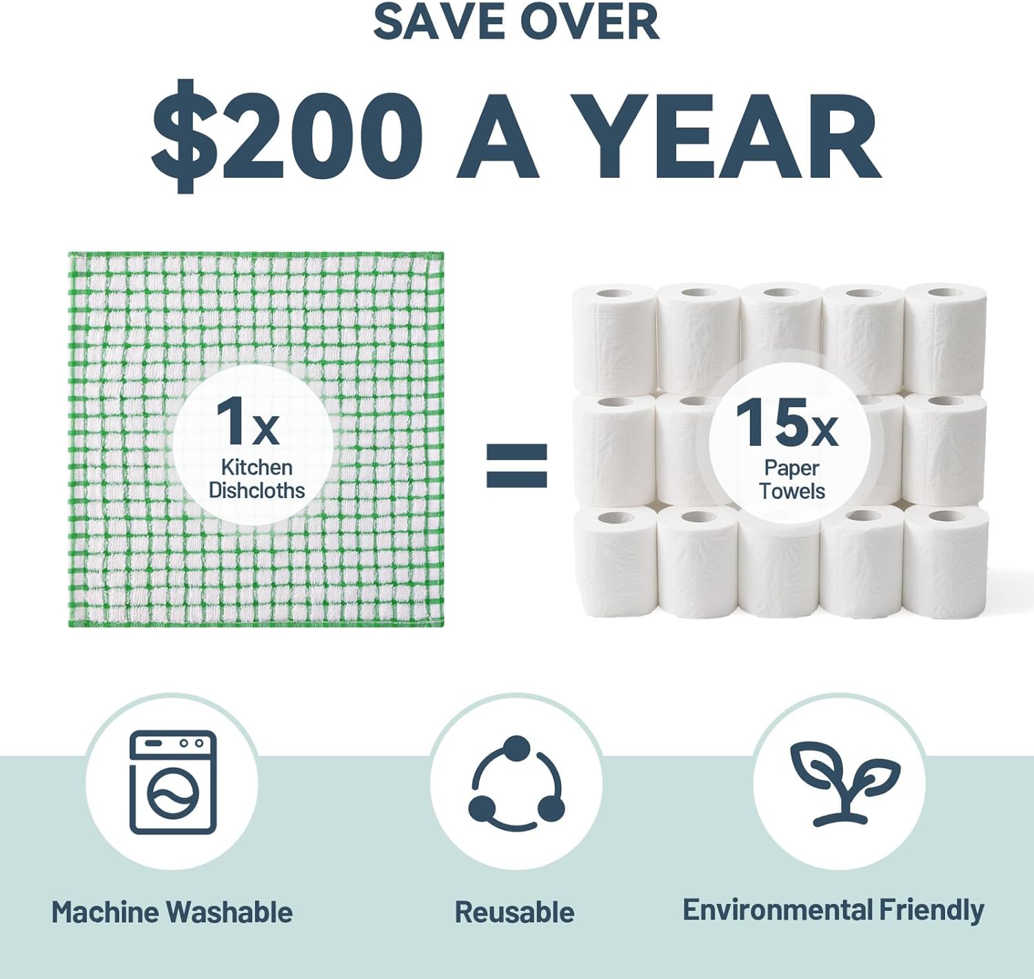 • SUPER ABSORBENT - Exquisite workmanship makes the kitchen towels super absorbent in seconds so they can be used every day. Plus, it dries faster than other patterns or materials, preventing the growth of odors.The sturdy construction of these towels ensures they can withstand rigorous use, while their softness protects delicate cookware and surfaces from scratches, making them a gentle yet robust choice for all your cleaning needs