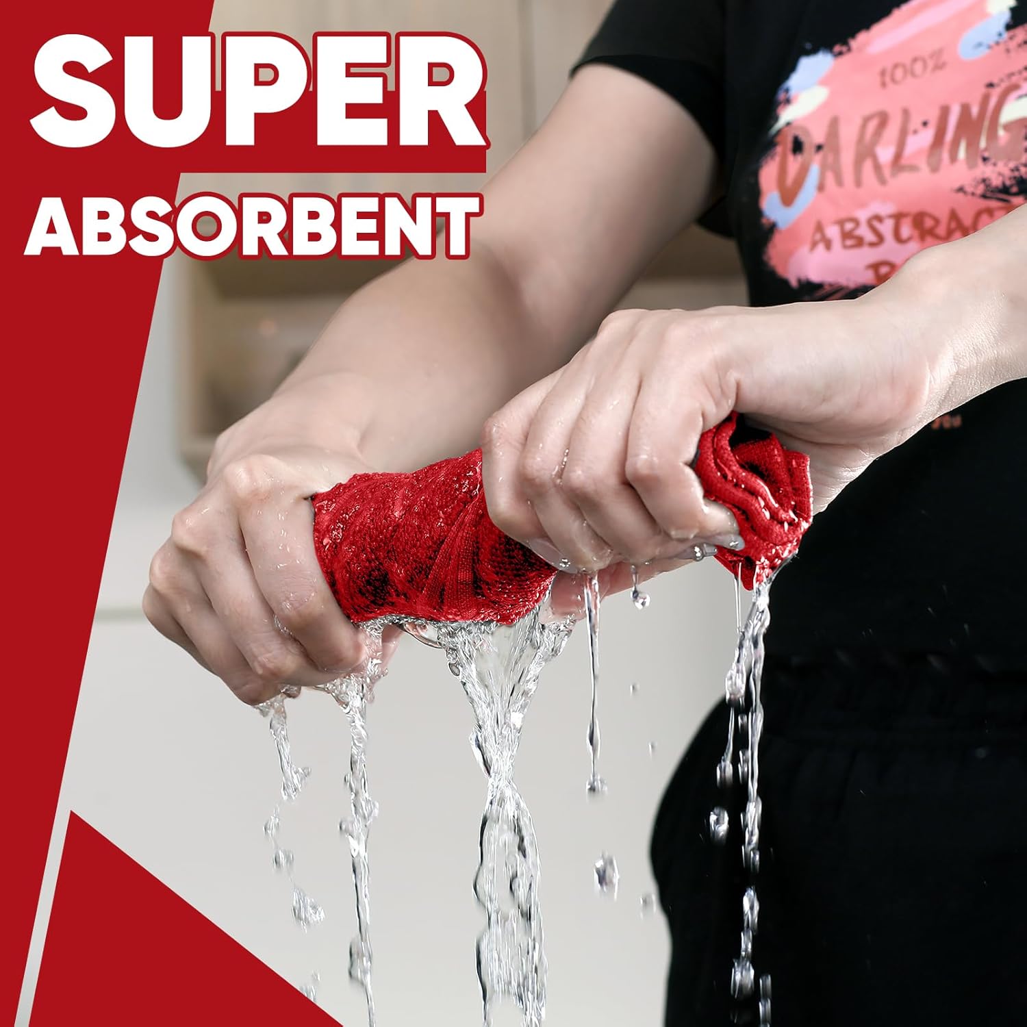 Oven Mitts Kitchen Towels Dishcloths with Pot Holders Sets 12PCS, Dish Towels Sets, Oven Gloves Pot Pads Heat Resistant 500 Degrees with Non-Slip Silicone Surface for Cooking Baking Grilling Red