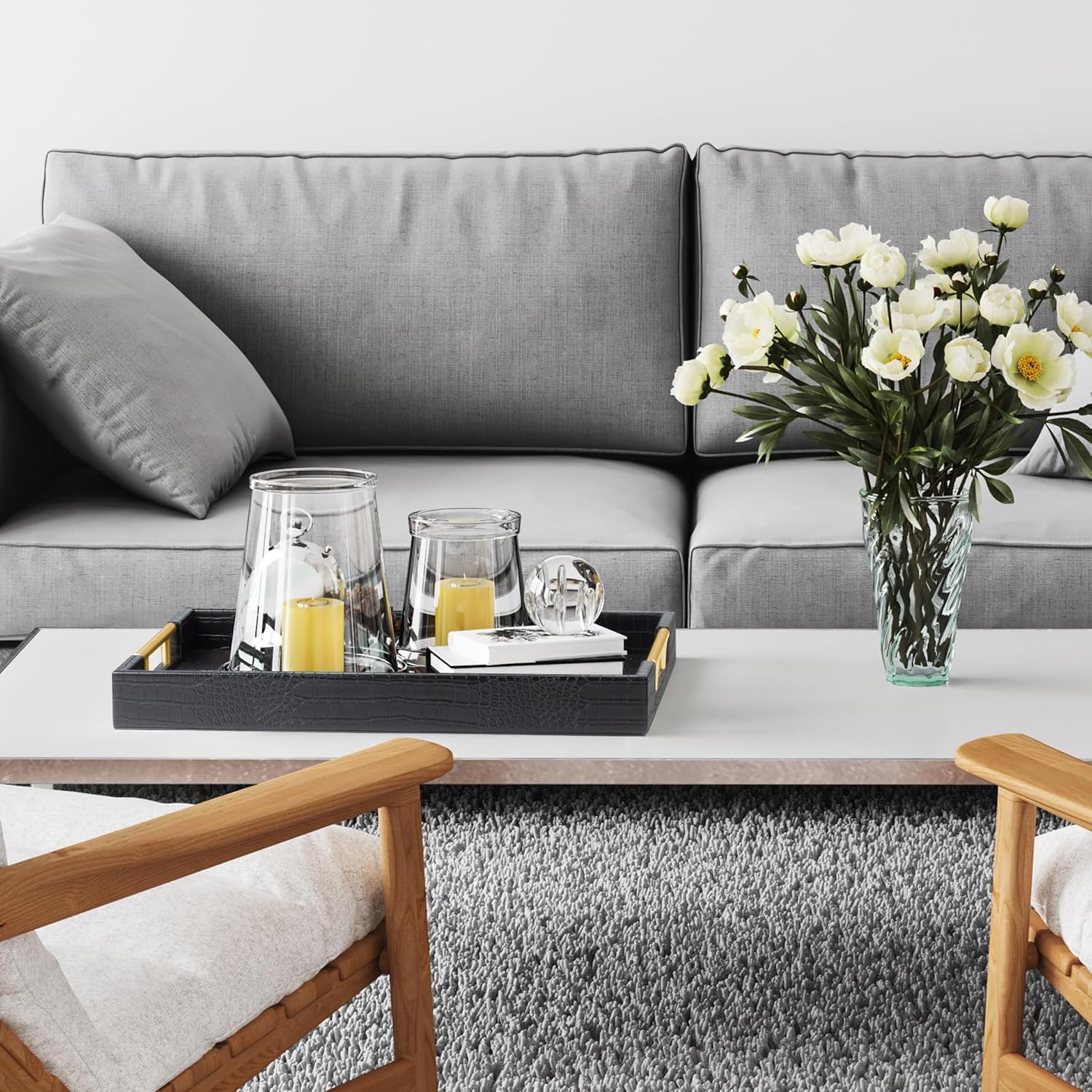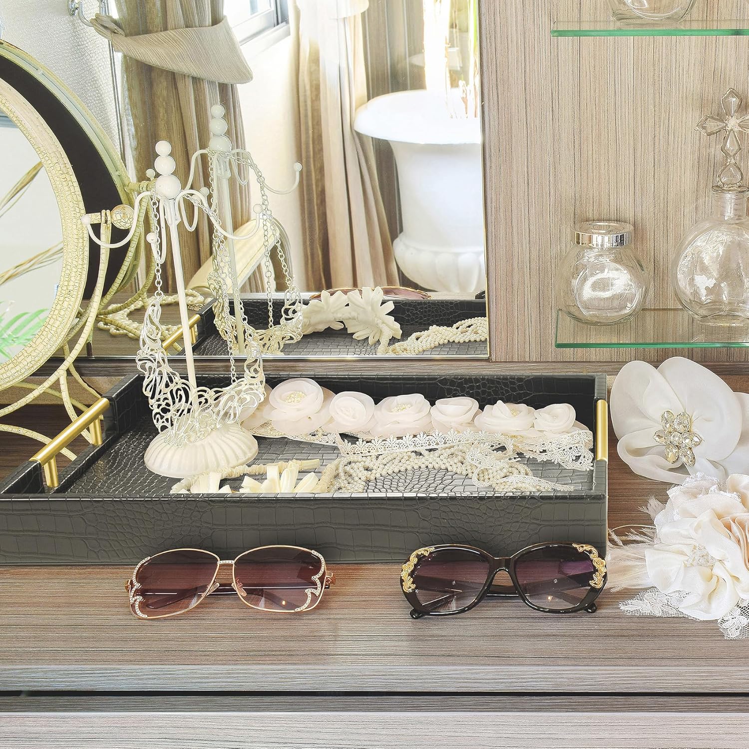 • ELEGANT AND STYLISH: Gorgeous faux alligator leather with exquisite polished gold handles brings this unparalleled looking luxury tray. The maximum suitable for all decoration styles of home or commercial premises. You can keep it in your living room, nursery, kitchen, bedroom, bathroom.