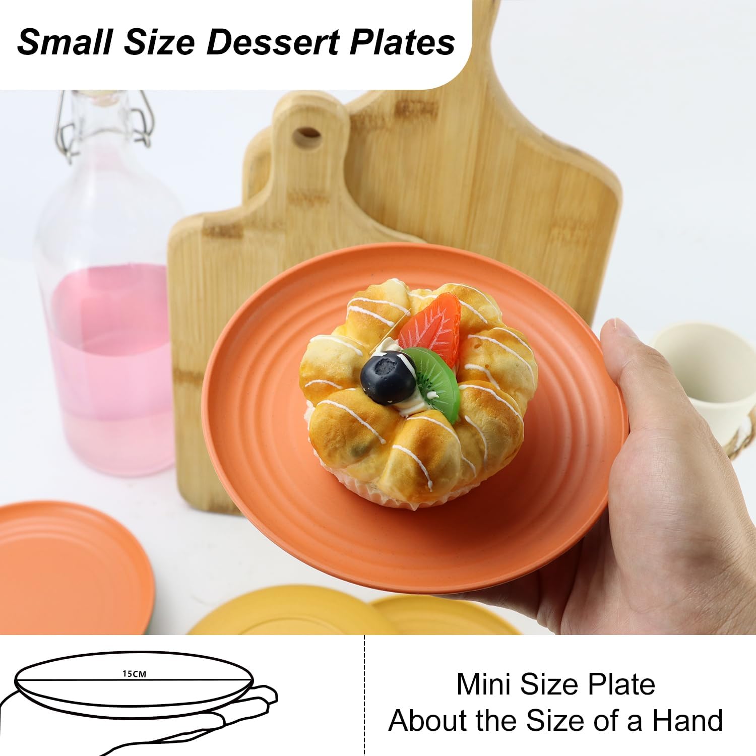 Homienly 5.7 Inch Small Plates-Wheat Straw Mini Plate, Unbreakable Plate Set Ideal for Dessert, Appetizers, Small Serving, Side Dish, Lightweight Dessert Dishes Plates, Set of 8, Colorful