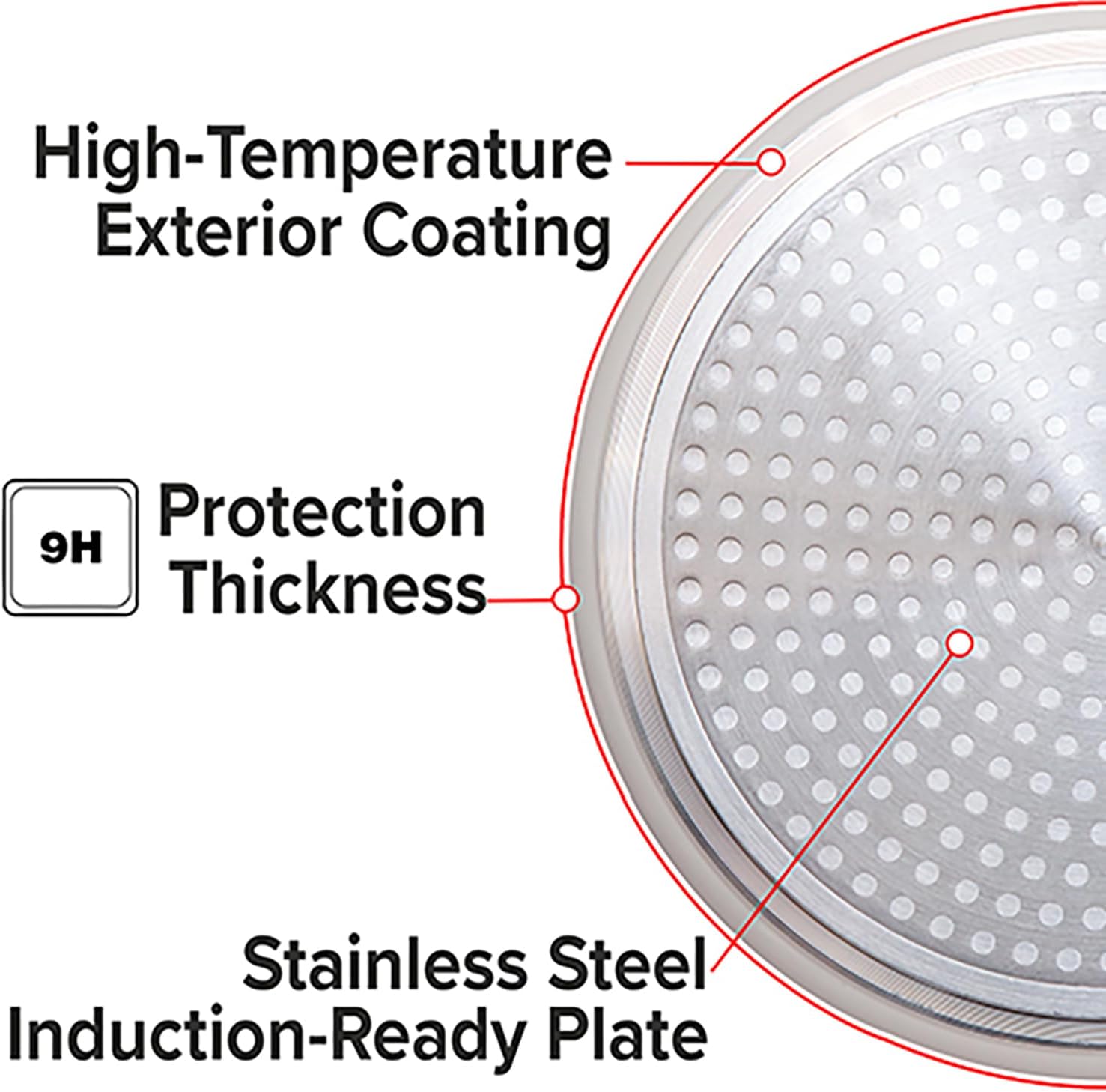 • DURALON BLUE HARDNESS – Hardness is rated at 9H. Since diamond is rated at 10H, It is extremely strong. It has HIGH resistances to abrasion, corrosion, and acid meaning it won’t chip or discolor and will retain its non-stick properties longer.