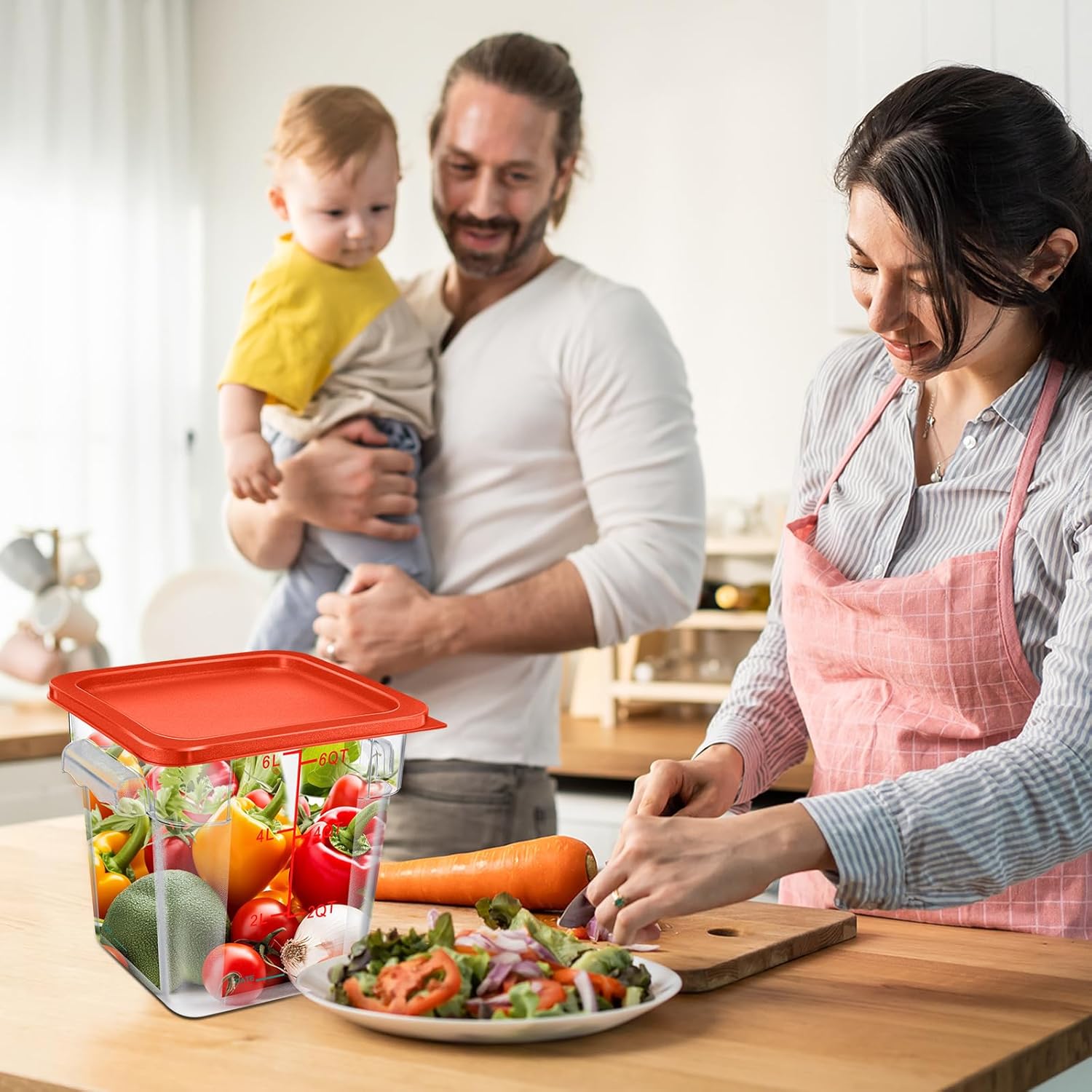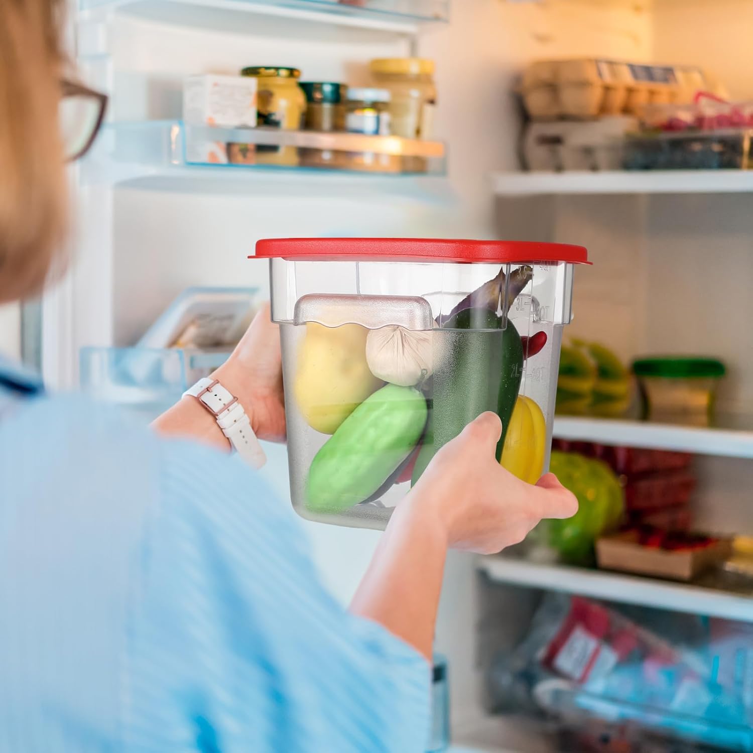 Suclain 8 Pack 4 QT and 6 QT Food Storage Containers with Lids Scales Handles Square Clear Restaurant Food Storage Containers Polycarbonate Commercial Grade for Kitchen Marinating Meat Dough(Red)
