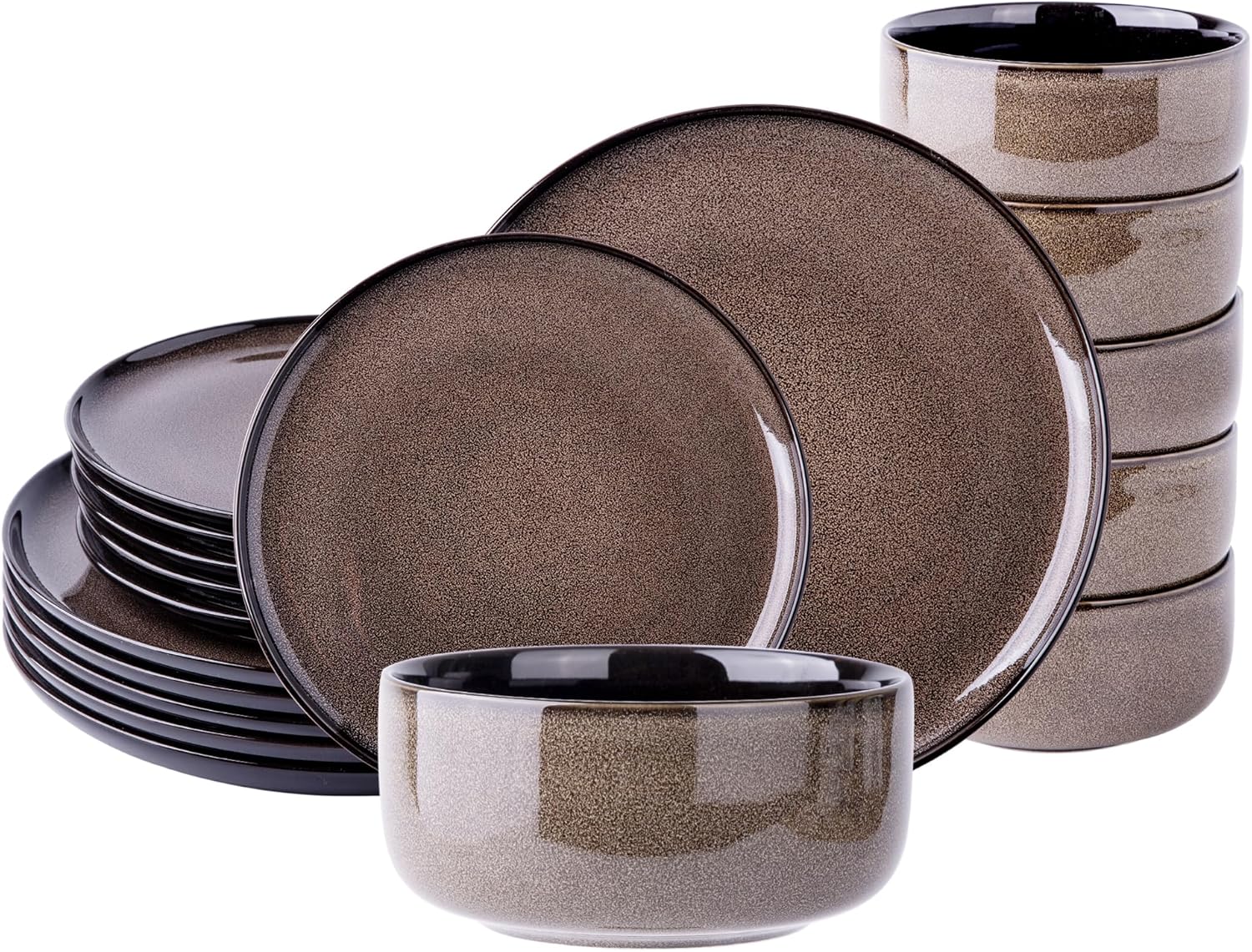 LeRatio Ceramic Dinnerware Sets for 6,Poreclain Plates and Bowls Sets,Handmade Reactive Glaze Dishes Set,Chip Resistant and Scratch Resistant | Oven&Dishwasher & Microwave Safe-Chestnut(18PCS)
