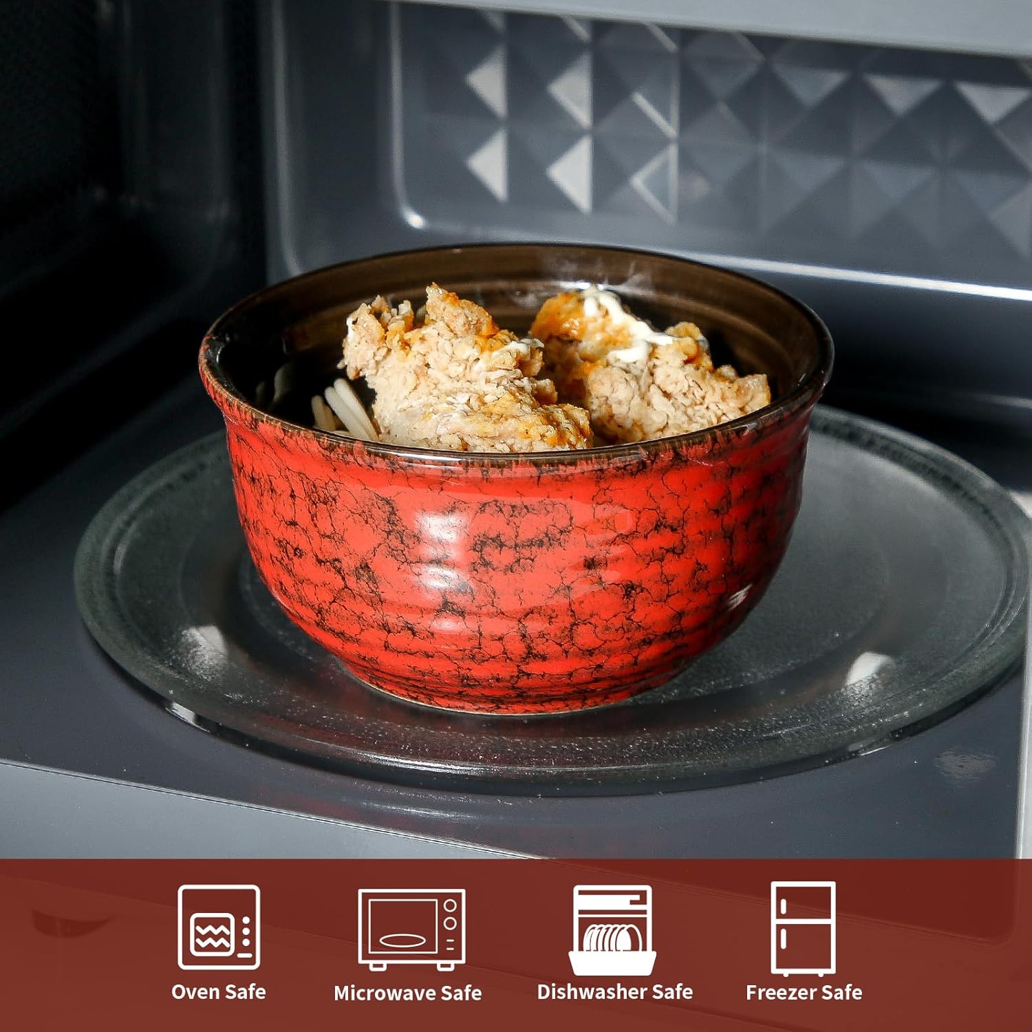 HASENSE 20 Ounces Cereal Bowls, Ceramic Soup Bowls Set of 6, Snack Bowls for Kitchen, Salad, Pasta, Rice, Oatmeal, Microwave & Dishwasher Safe, Red