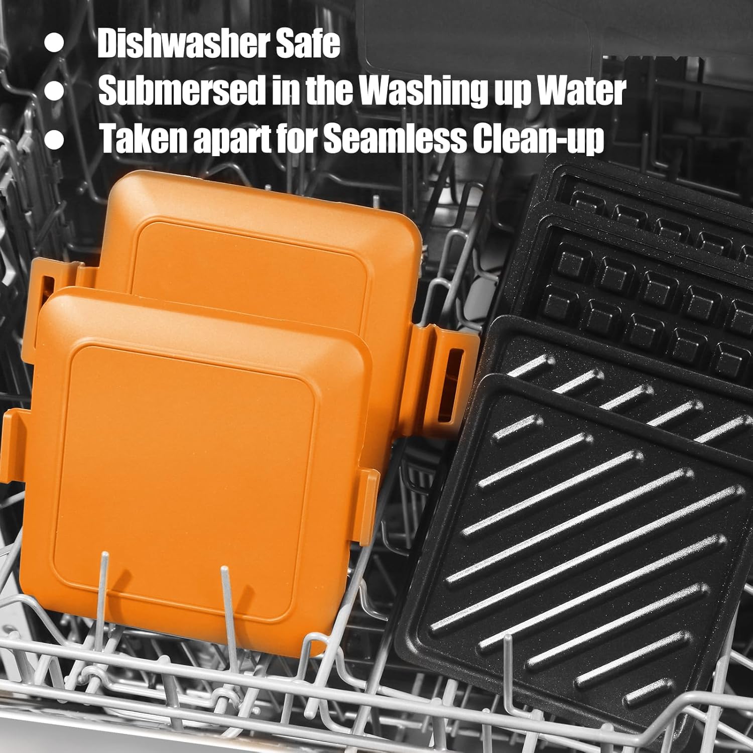 • 3.Dishwasher Safe and No Electric Unplugged microwave sandwich toaster use a safe non-stick coating that does not stick to the surface of the food, toastie maker can be washed in the dishwasher or soaked in washing water with a soft cloth. Do not scrub with sharp objects