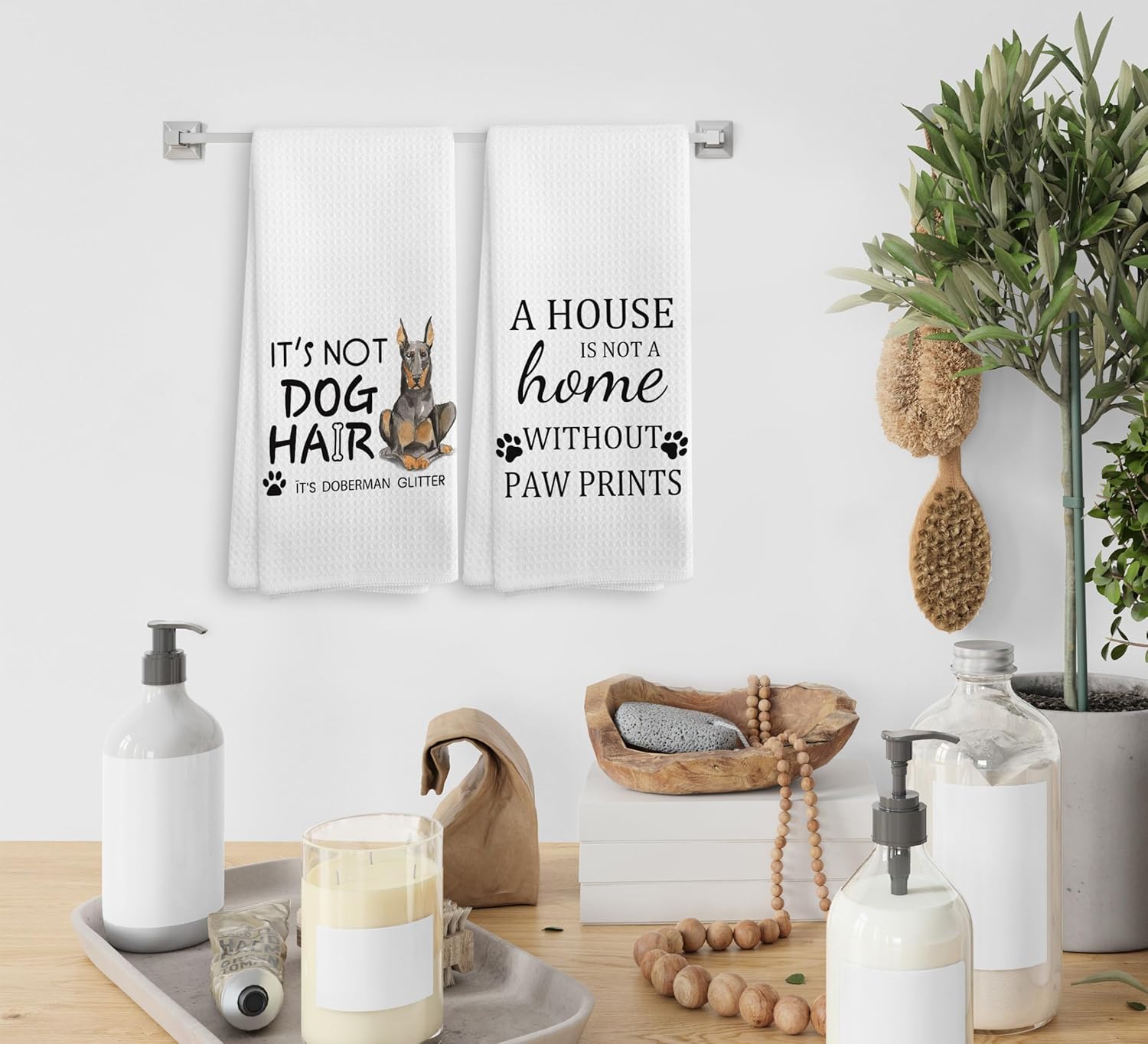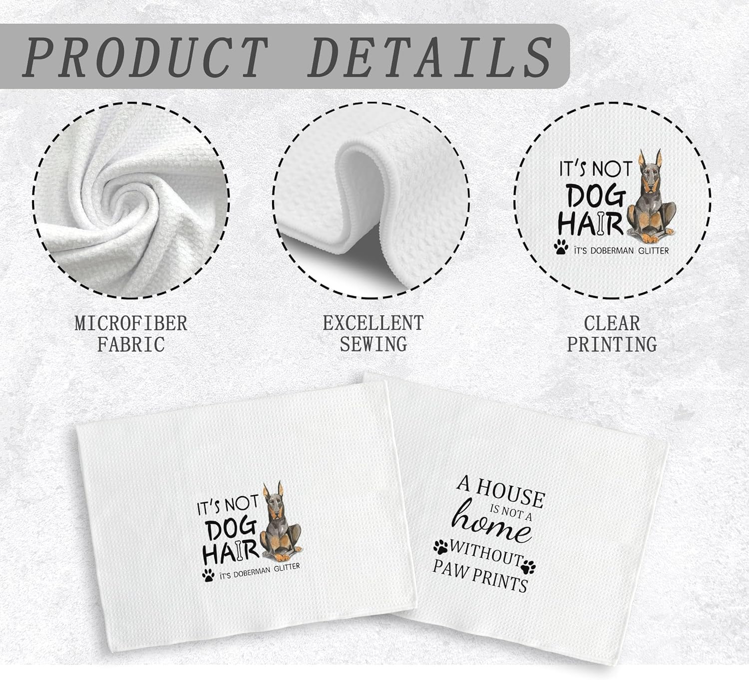 Doberman Glitter Dog Decor Kitchen Towels and Dishcloths Set of 2, Doberman Glitter Dog Mom Gifts for Women, 16×24 Inches