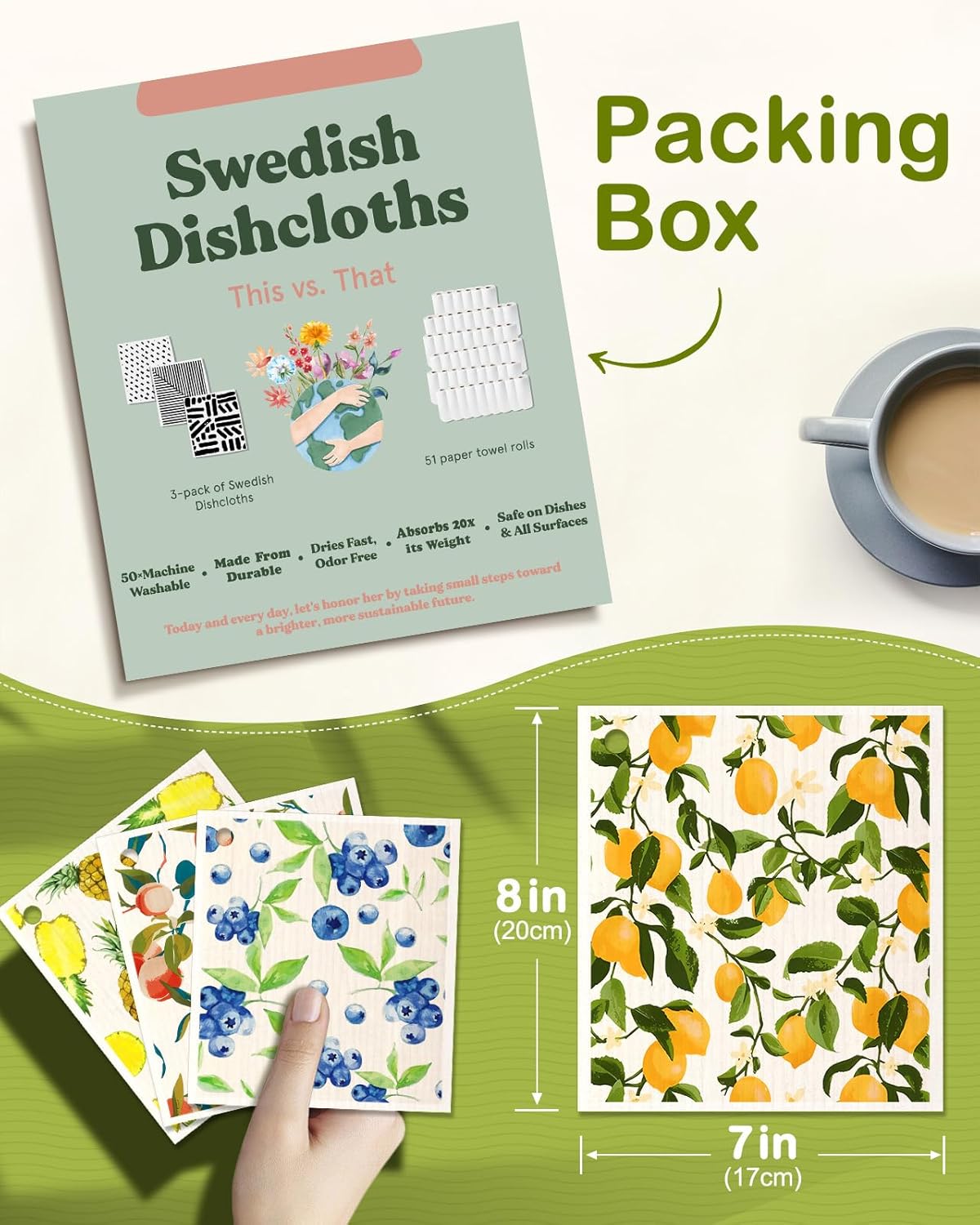 • SPECIAL HOLE: This swedish rags design with small hole for easier hanging. And this swedish wipe set design with a beautifully packaged and makes the good set for birthdays, holidays, housewarming parties, and other special occasions