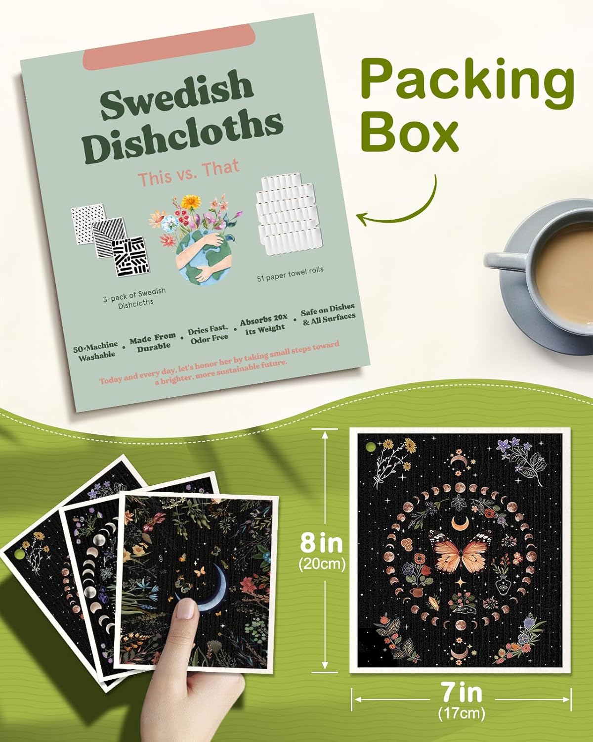 • SPECIAL HOLE: This swedish rags design with small hole for easier hanging. And this swedish wipe set design with a beautifully packaged and makes the good set for birthdays, holidays, housewarming parties, and other special occasions