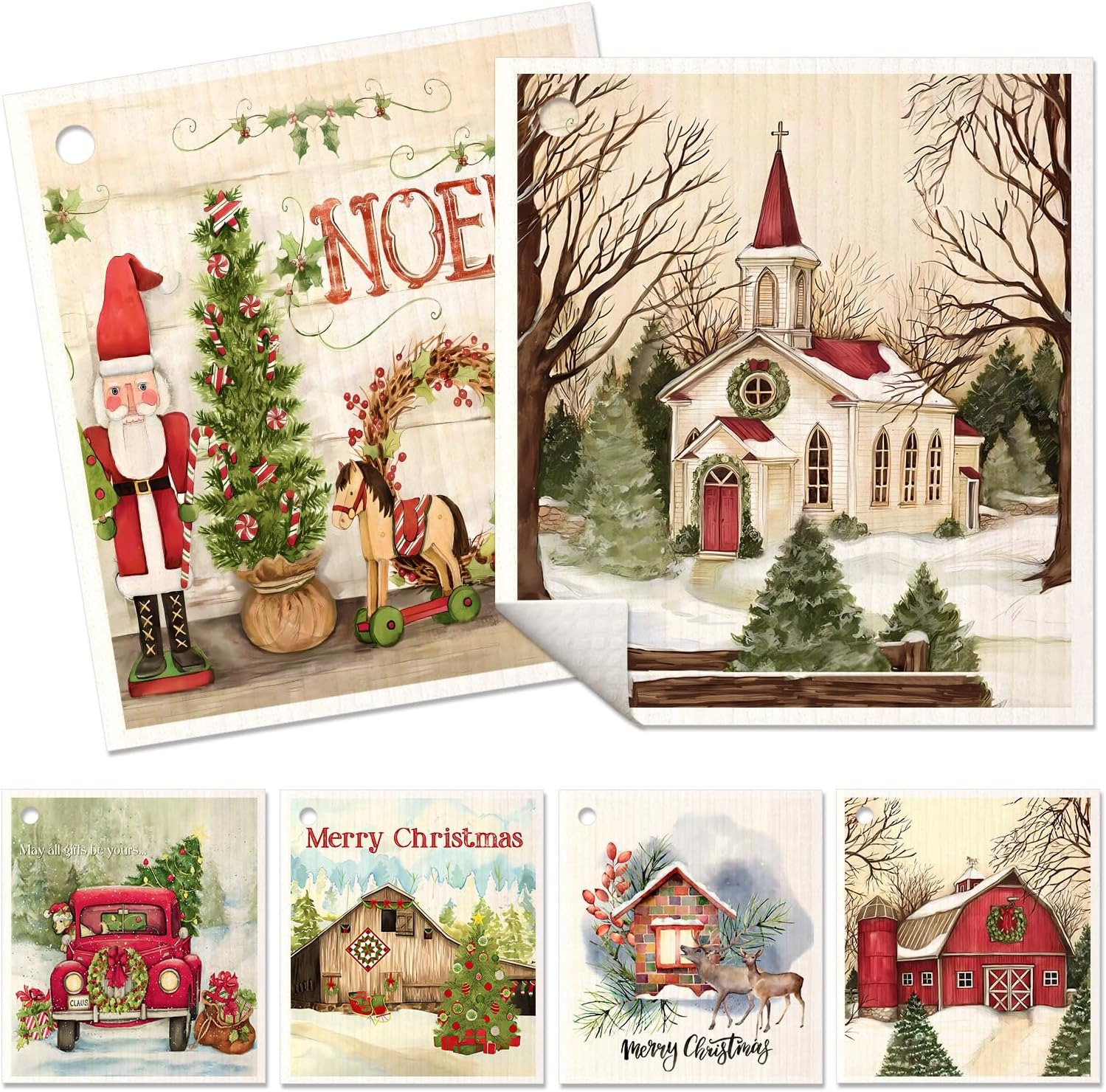 6 Pack Christmas Swedish Dishcloths for Kitchen - Reusable Dish Cloths for Washing Dishes Absorbent Cute Holiday Kitchen Towels Cleaning Sponge, Xmas Theme