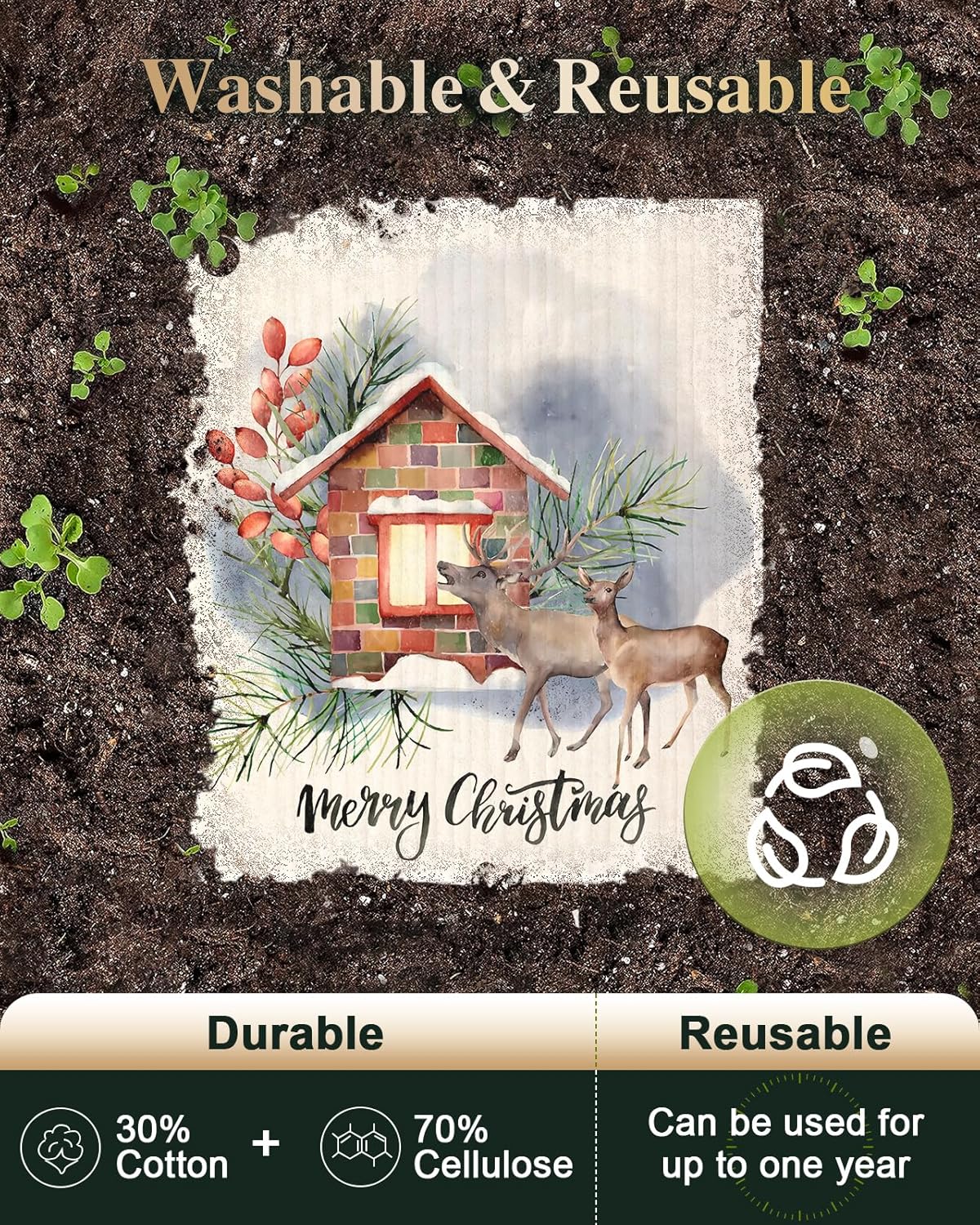 • REUSABLE: Our reusable Swedish dishcloths, made of 30% cotton and 70% cellulose, are fast-drying and super absorbent. They are ideal for multiple cleaning projects around the kitchen and house. The winter-themed designs and holiday-inspired patterns make cleaning tasks festive and enjoyable