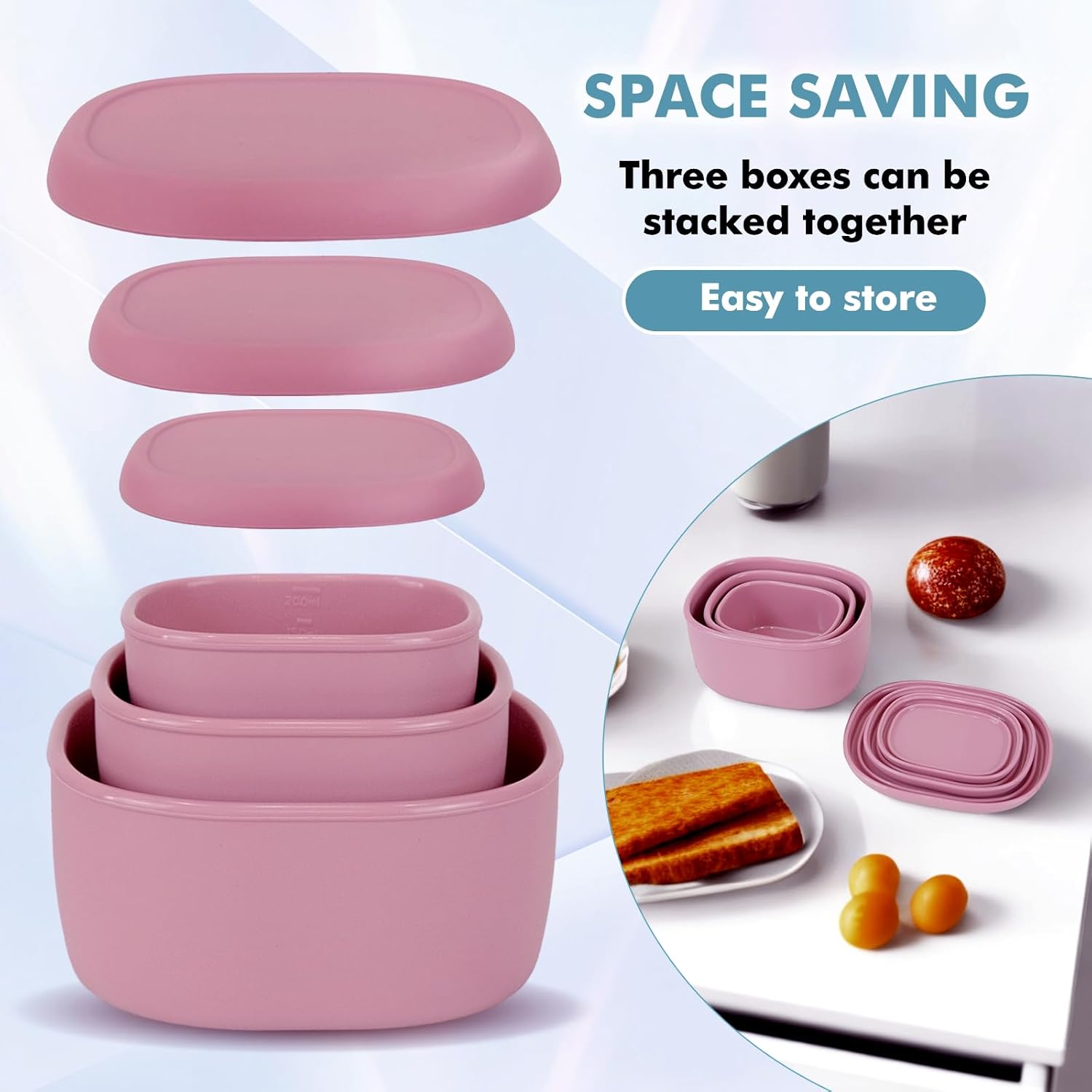 Anatole Silicone Food Storage Containers Set of 3 Lunch Box Bento with Lids BPA Free Dishwasher Microwave Oven Freezer Safe (6.7oz, 10oz, 20oz)