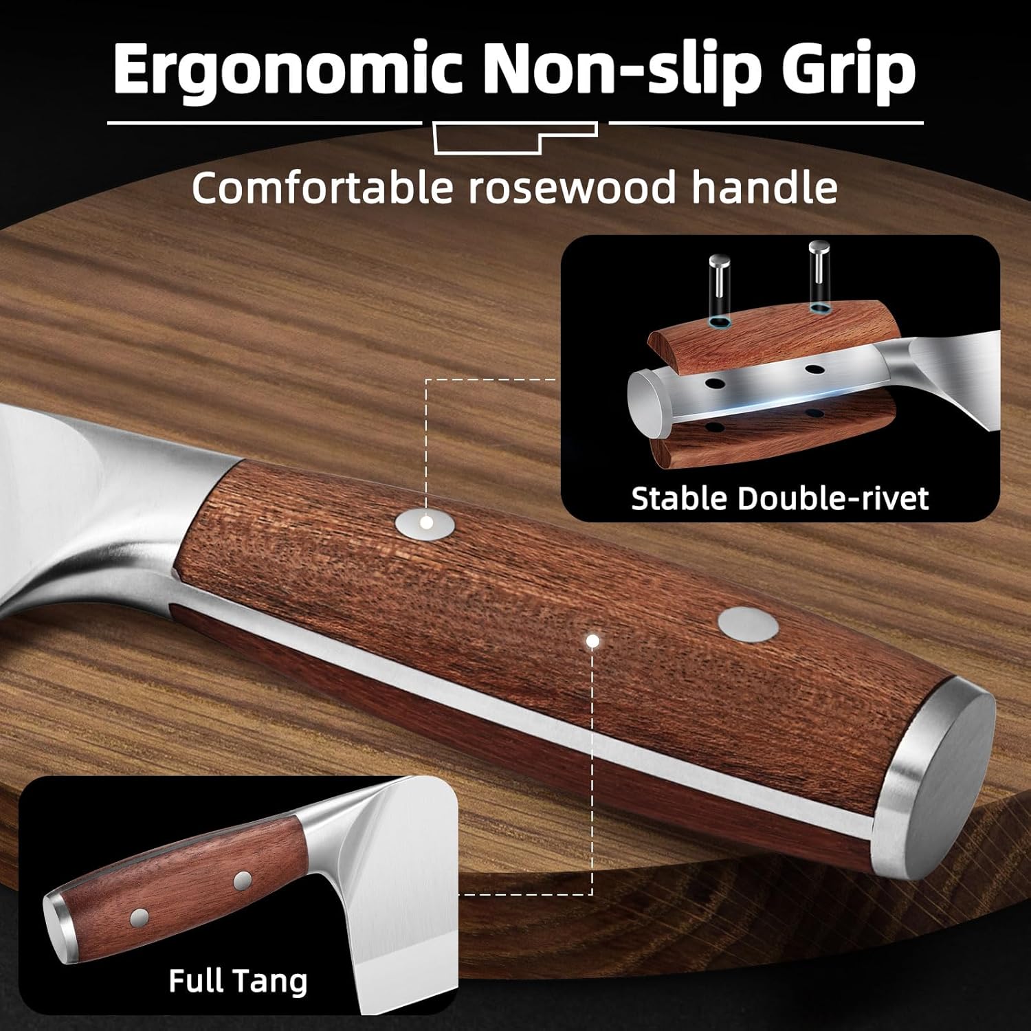 • ERGONOMIC HANDLE:The handle feels nice and comfortable to hold,it is made of quality rosewood and improved by the vacuum technology process, which solves the problem of cracking.