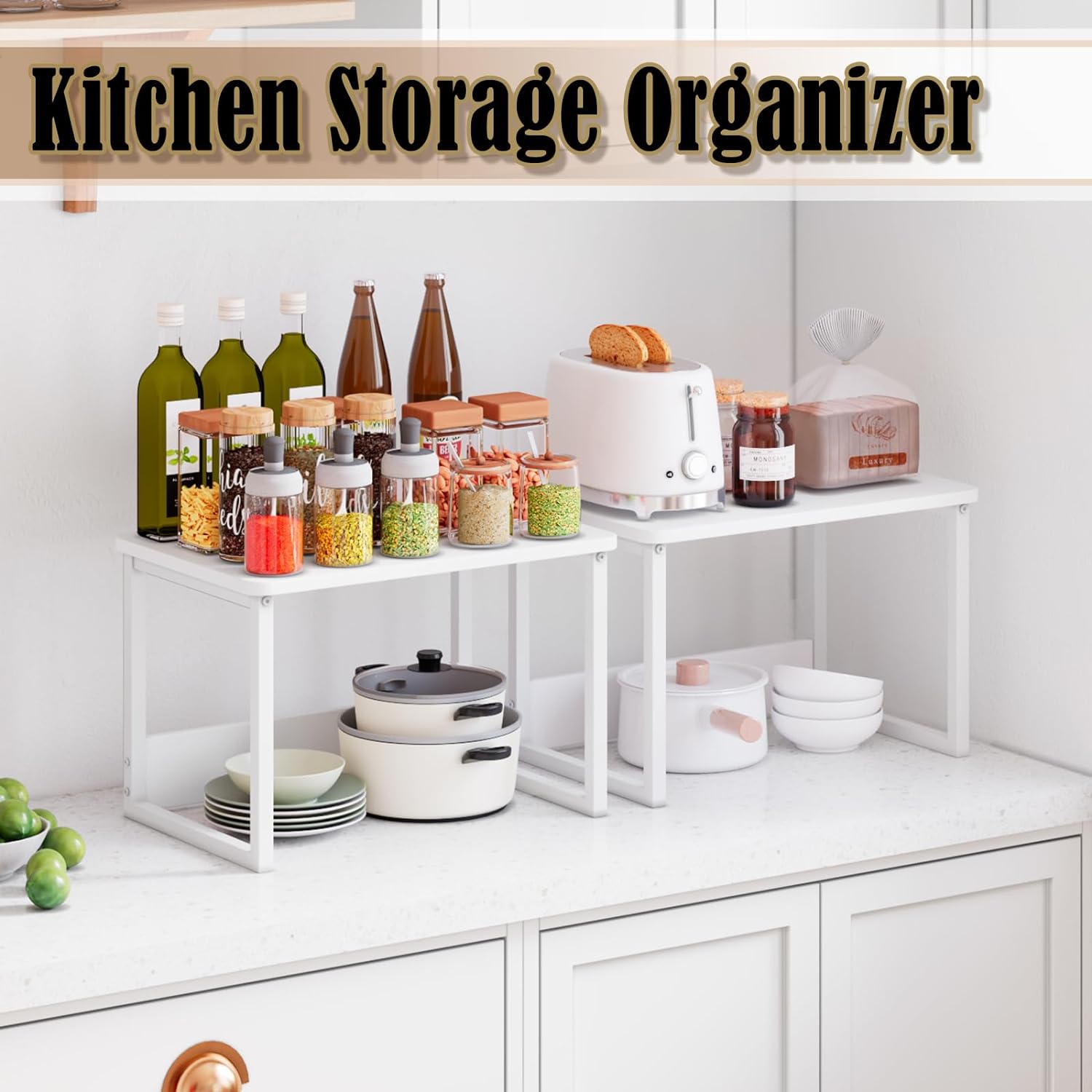 • 【Multifunctional Counter Shelf】①In the kitchen: put them in the cabinet or on the counter to create more space for boxed grains, spice bottles, glasses, bowls and more. ②In the living room: create a neat coffee area with these shelves. ③In the office: can be used as a printer stand, laptop riser, book shelf. ④ In the bedroom: used to organize cosmetics.