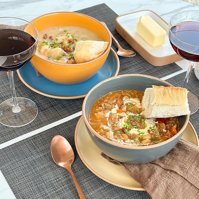 • CERAMIC WITH 20% STRONGER PALADIN CLAY: Our clay was refined and fired with you in mind. Only we have Paladin Clay which is 20% stronger than the competitors, giving you a stronger and more durable ceramic bowl. The shape was designed to stack and nestle nicely in your cupboard or shelves, help your food look even more delicious, and make you happy every day. Our bowls are microwavable and also freezer, oven, and dishwasher safe.