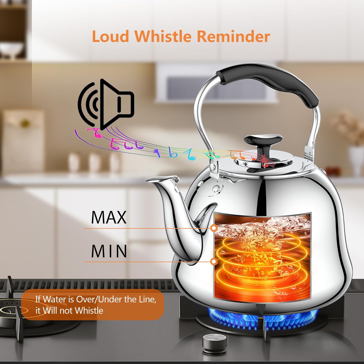 2L Whistling Stovetop Tea Kettle - Food Grade Stainless Steel Teapot with Fast Boil, Wide Mouth, Anti-Scalding Handle, Ideal for Stove Top – Perfect for Tea, Coffee & Hot Water