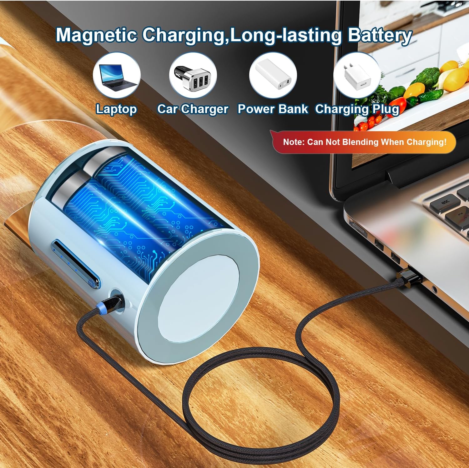 • 【Upgraded Magnetic Charging】This personal blender boasts a unique USB-magnetic charging interface, providing fast charging and enhanced waterproofing. With a built-in 4000mAh rechargeable battery, a 2-3 hour initial charge is recommended before use.