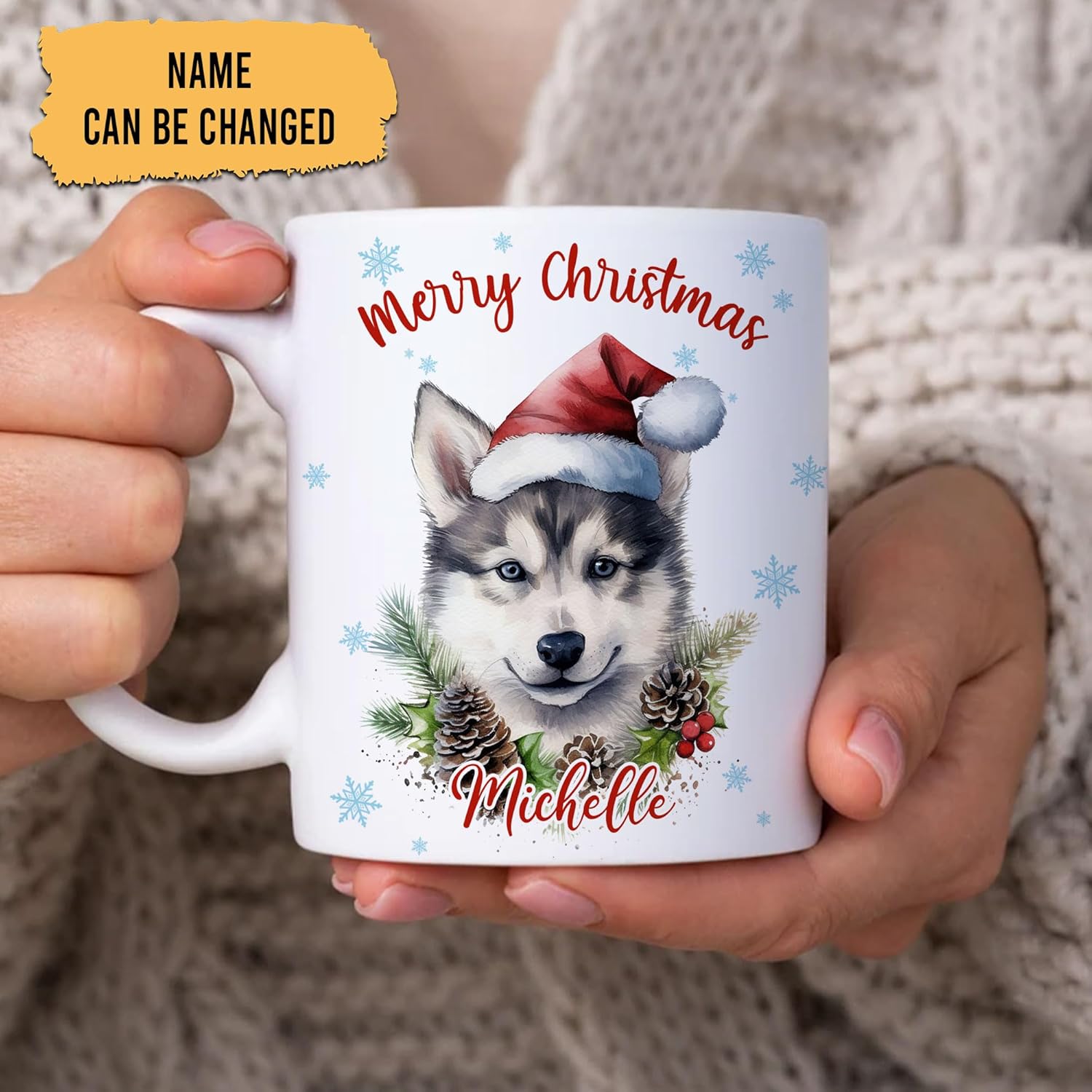 Hyturtle Personalized Gifts Dog Lover - Husky Merry Christmas Custom Name Ceramic Coffee Mug Cup 11oz - Cute Animal Lovers Gifts For Women, Girl kids Family On Birthday, Christmas