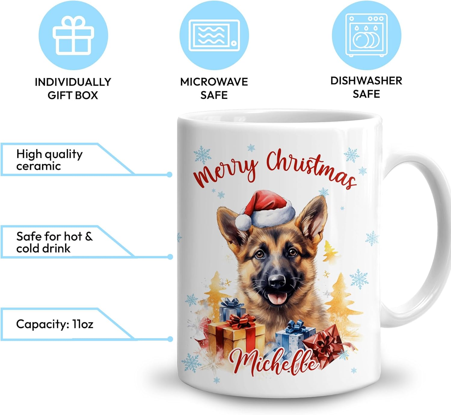 Hyturtle Personalized Gifts Dog Lover - German Shepherd Merry Christmas Custom Name Ceramic Coffee Mug Cup 11oz - Cute Animal Lovers Gifts For Women, Girl kids Family On Birthday, Christmas