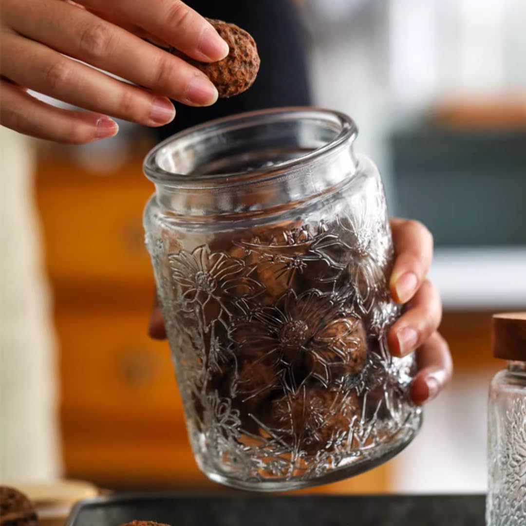 • Vintage Embossed Jar: The appearance of the vintage glass jar adopts the design concept of sunflower embossed, exquisite and beautiful, both decorative and practical performance, suitable as Christmas festival decorative glass jar for your family and friends