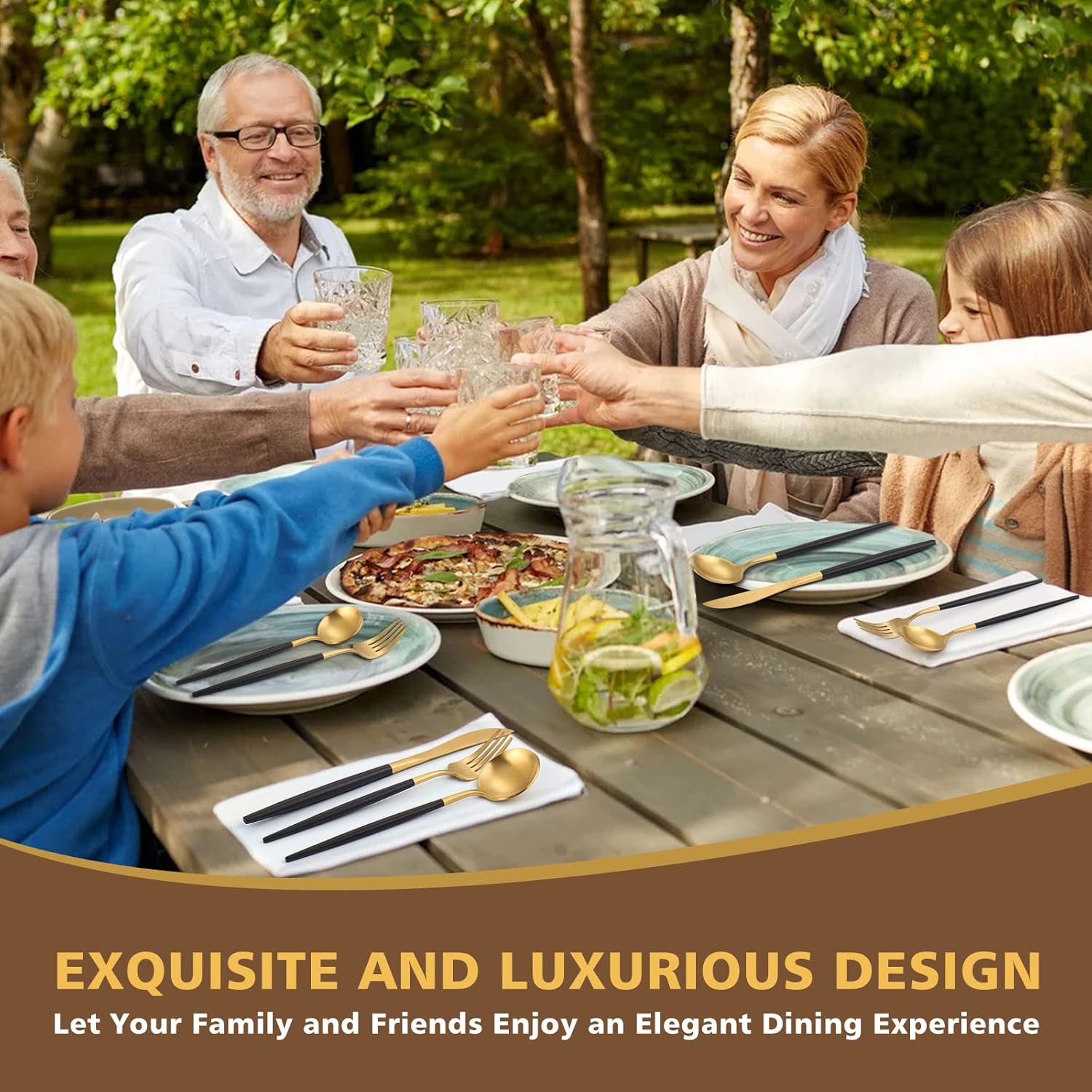 • DISHWASHER SAFE :This black gold silverware is easy to clean and dishwasher safe.Your good care can make the knives,forks and spoons silverware still look as same as new